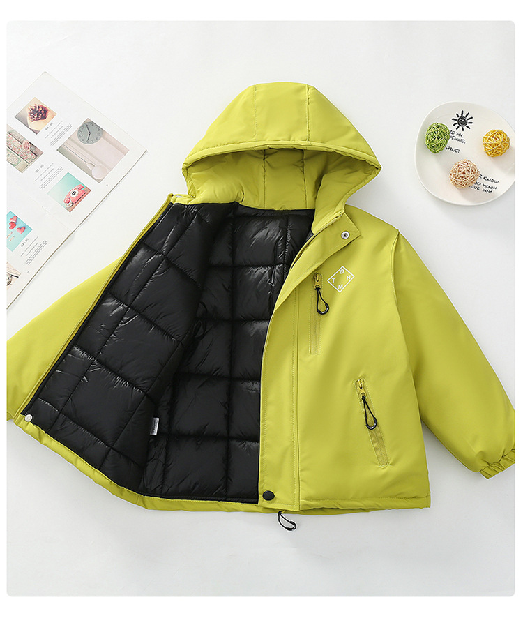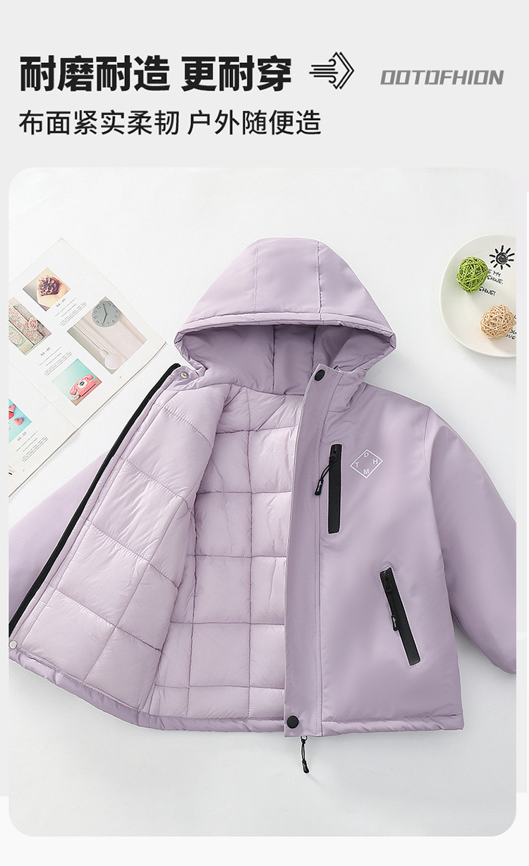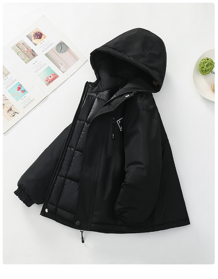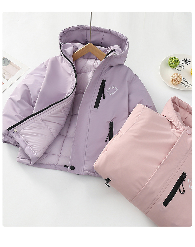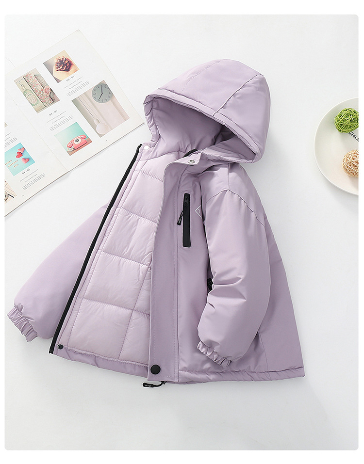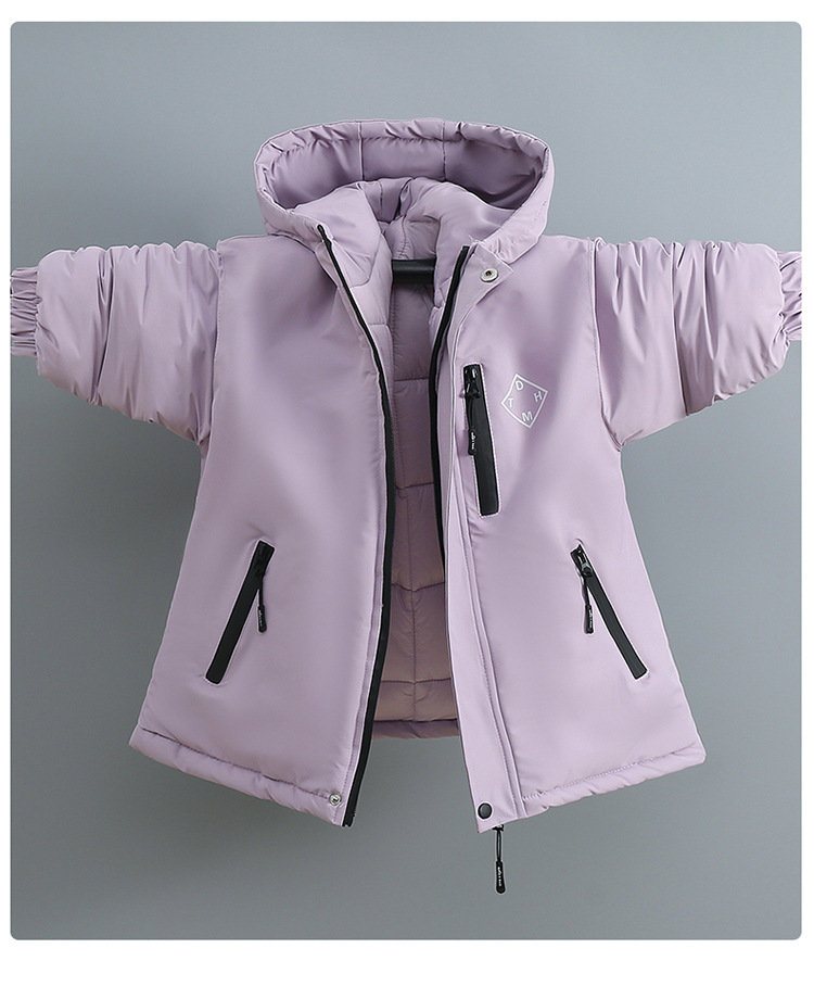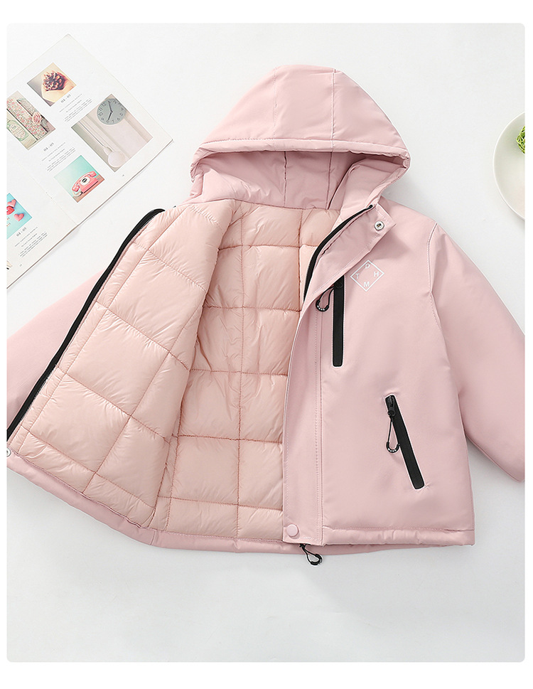 Niños trajes de asalto engrosados otoño-invierno 2025 nuevos niños de invierno chaqueta de algodón de niña grande ropa de invierno con sombrero de moda