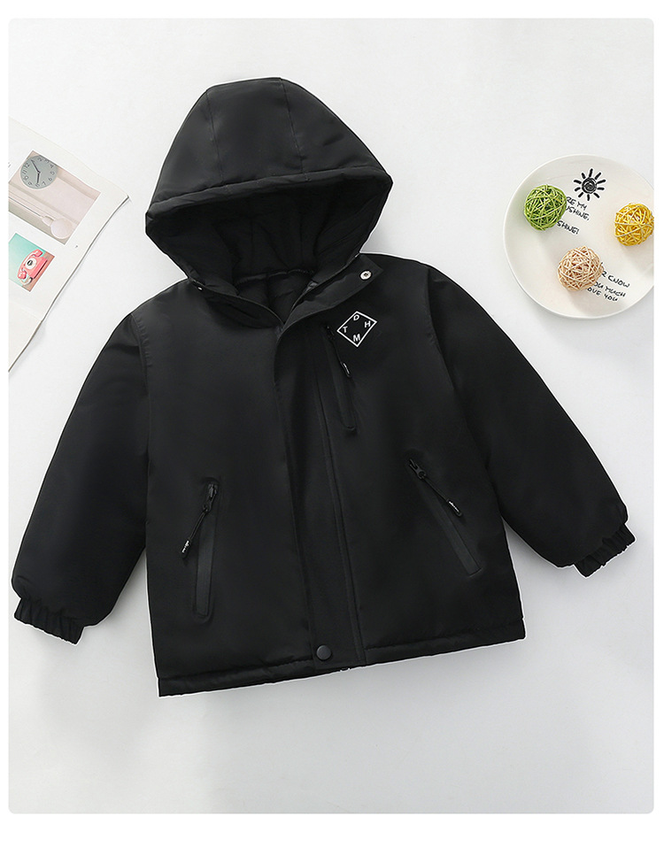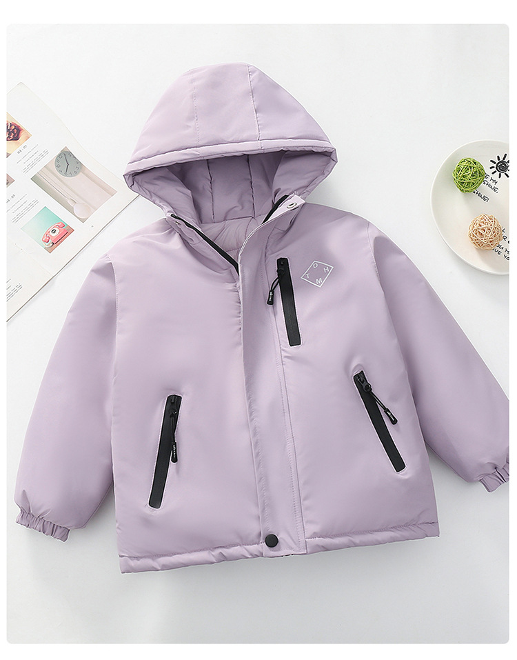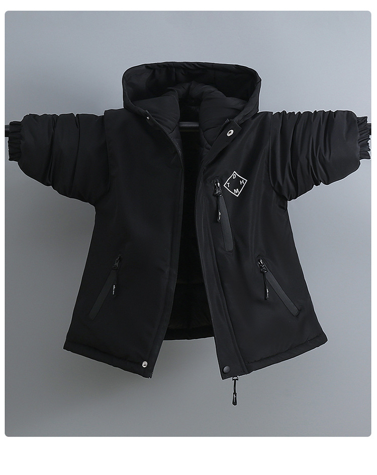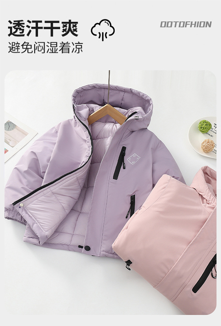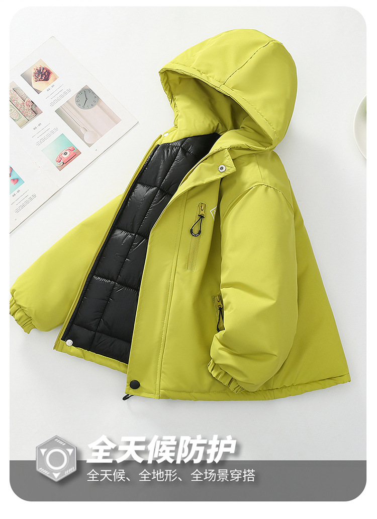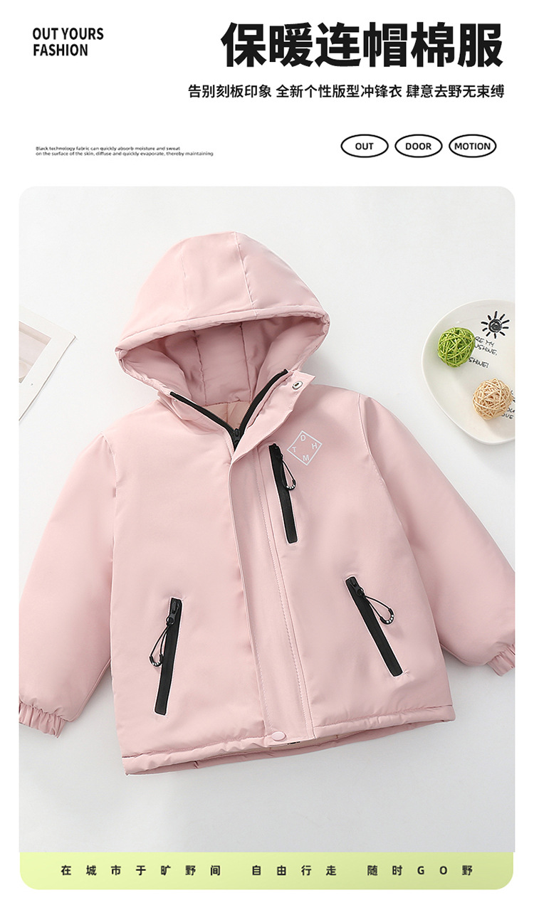 Niños trajes de asalto engrosados otoño-invierno 2025 nuevos niños de invierno chaqueta de algodón de niña grande ropa de invierno con sombrero de moda