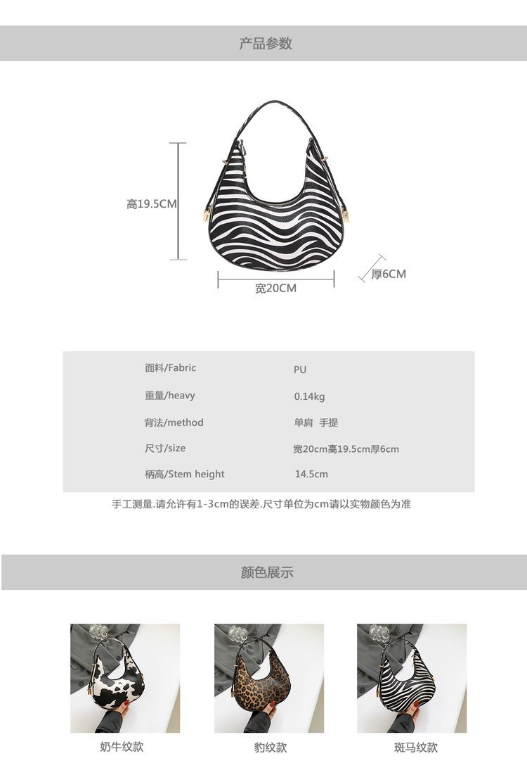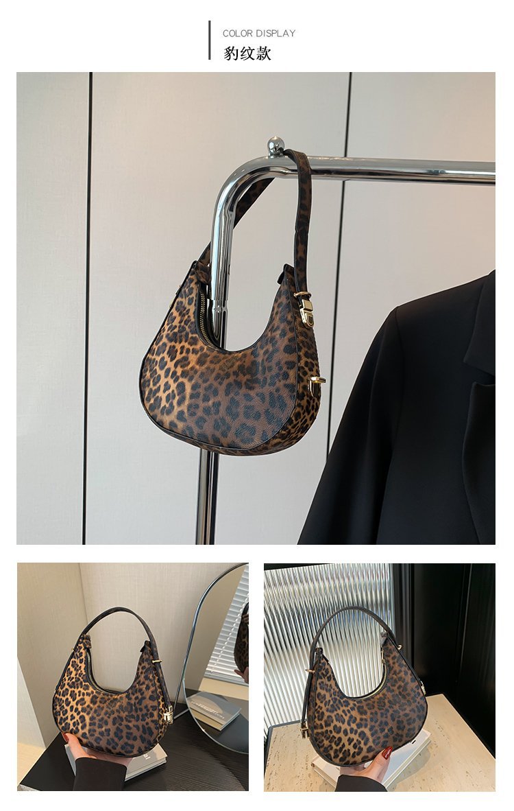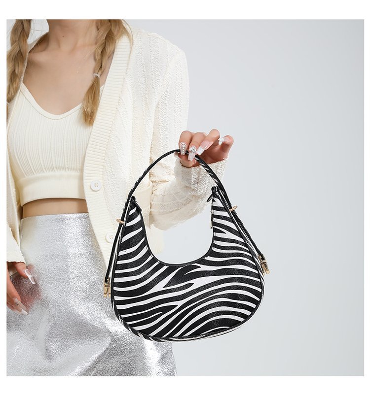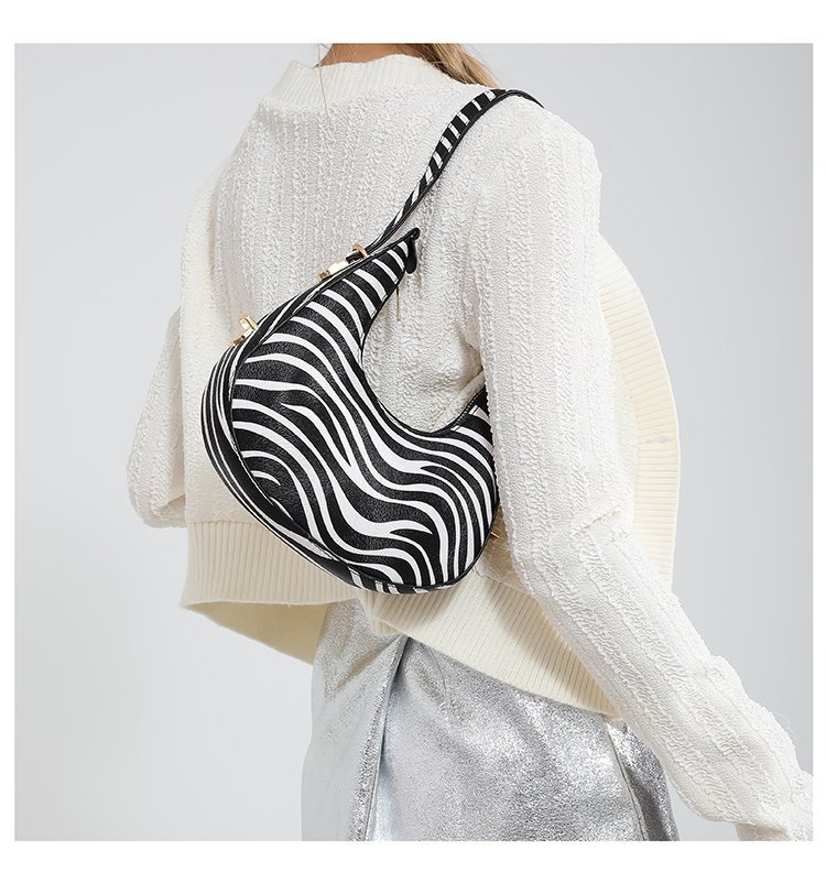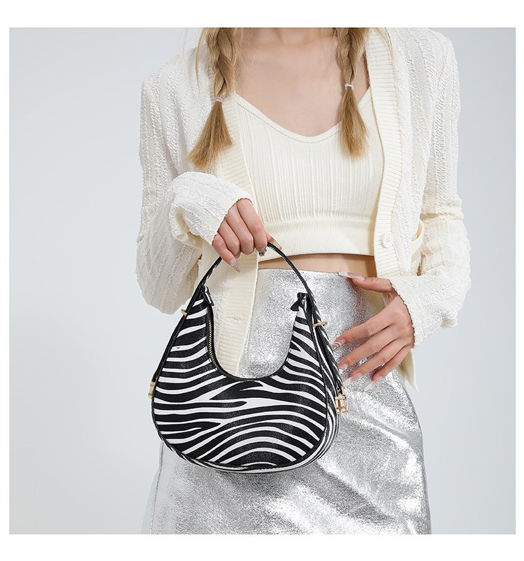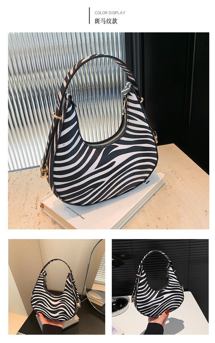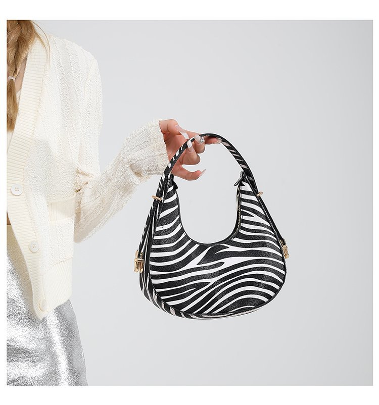 Exquisita moda con estampado de leopardo 2024 nuevo estilo estilo occidental patrón de cebra personalidad textura tendencia mensajero portátil bolso de luna nueva mujer