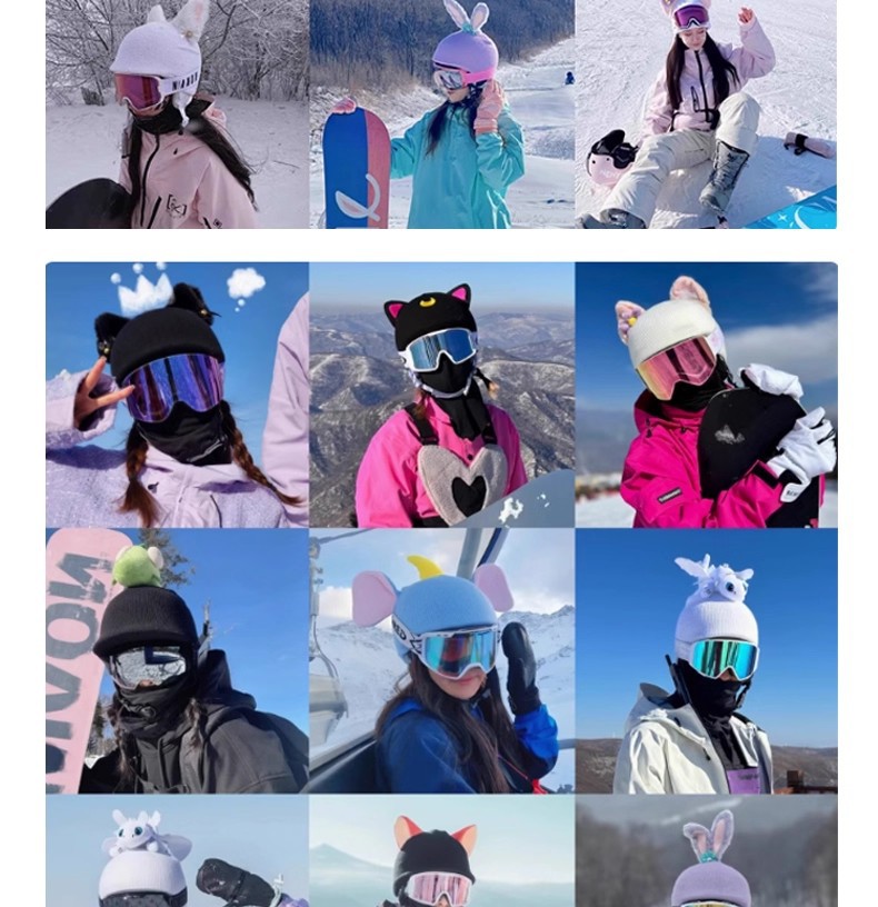 Lingnabel casco de esquí cubierta de sombrero de batería de doble placa sola cubierta de casco de nieve para mujeres adorables accesorios de decoración de orejas para niños