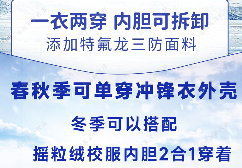 Uniforme escolar de Shenzhen estudiantes de secundaria Teflon versión 3 en 1 chaqueta de asalto manga larga abrigo de tela de tres protecciones revestimiento desmontable