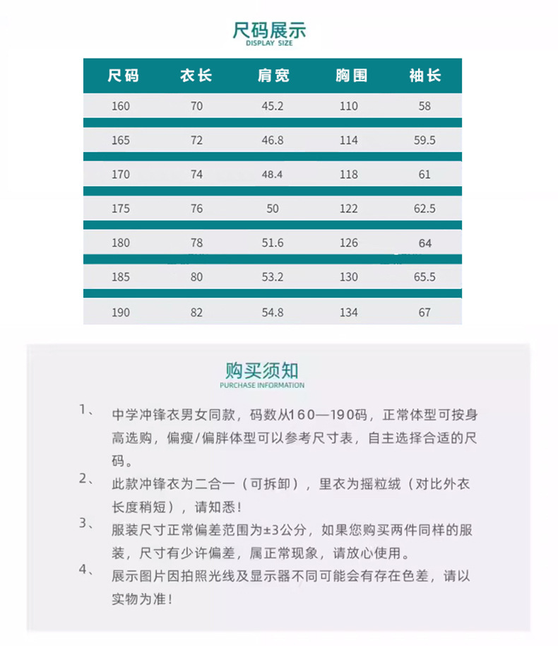 | Color | Vestuco de asalto de la escuela secundaria especial (abrigo + forro de color combinado), abrigo de invierno de la escuela secundaria especial, pantalones de invierno de la escuela secundaria especial, abrigo de invierno de la escuela secundaria, pantalones de invierno de la escuela secundaria (bolsillo sin cremallera), pantalones de invierno de la escuela secundaria (bolsillo con cremallera), pantalones de invierno delgados de alto nivel (bolsillo con cremallera), pantalones de invierno de la escuela secundaria especial (Sorona caliente / sin veludo) 165 |