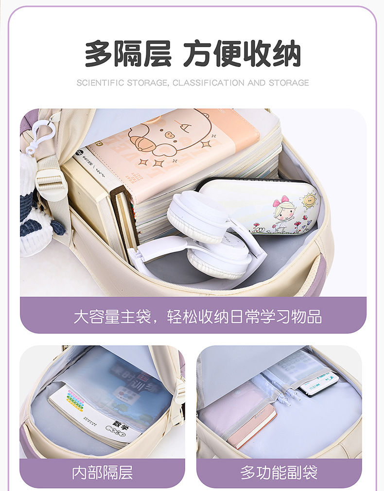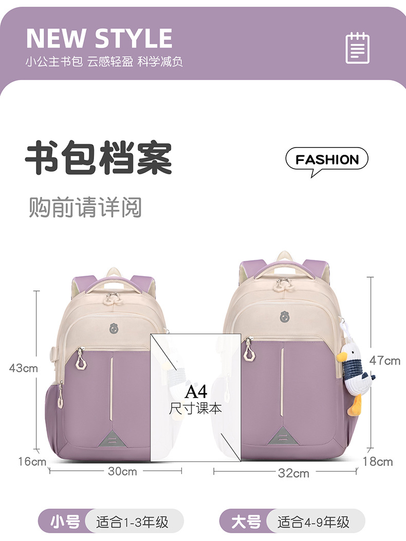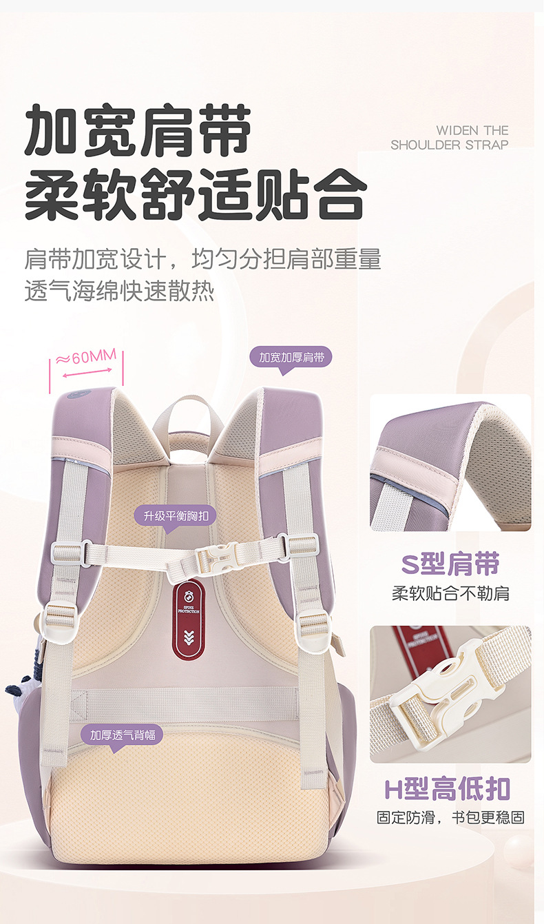 Kami Sheep Mochila para niñas, estudiantes de tercer a sexto grado, niñas, niños, protección de la columna, reducción de la carga, mochila para niñas de secundaria