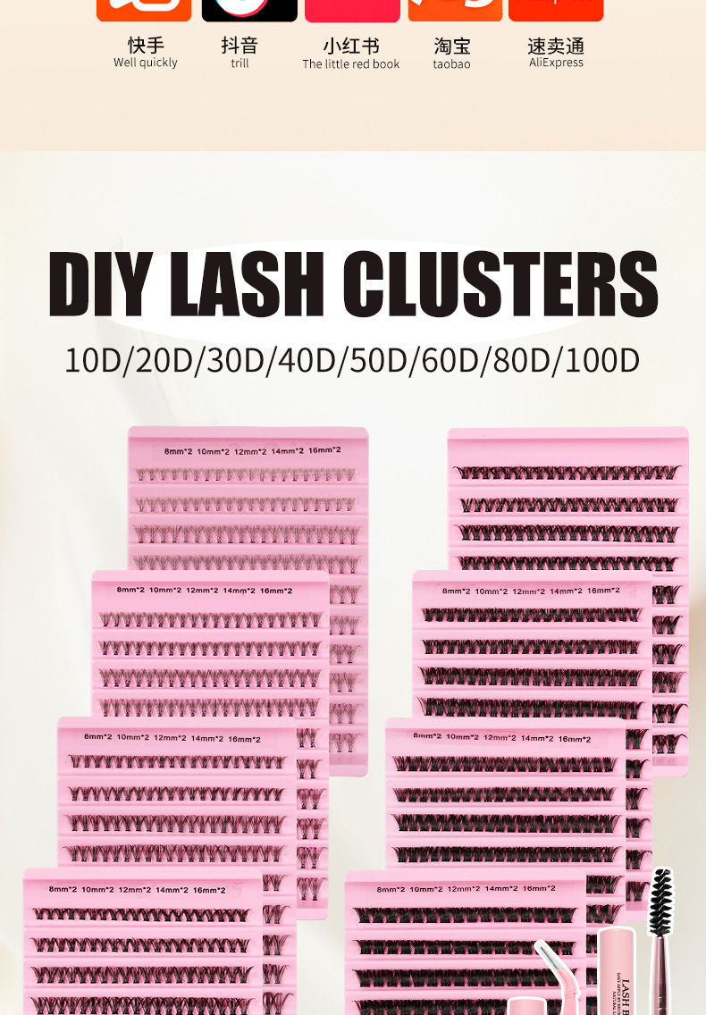 Kit de pestañas europeas y estadounidenses transfronterizas pestañas falsas extensiones DIY pestañas conjunto de pegamento pestañas
