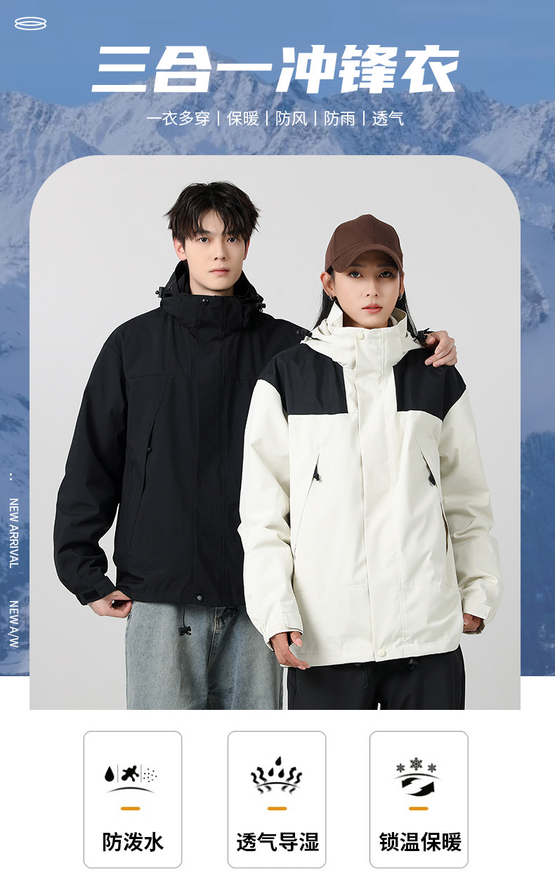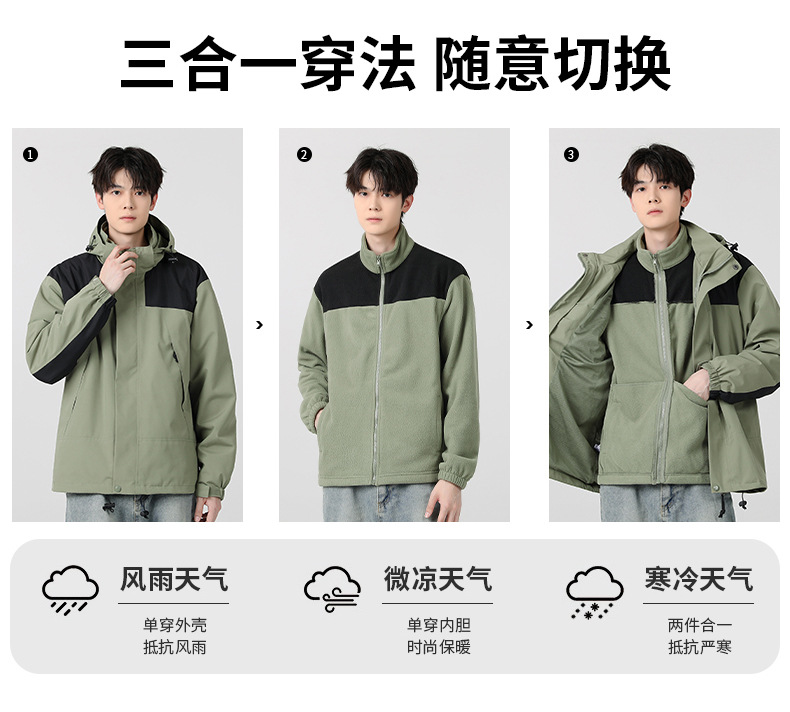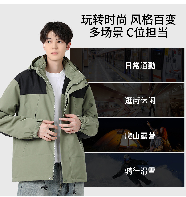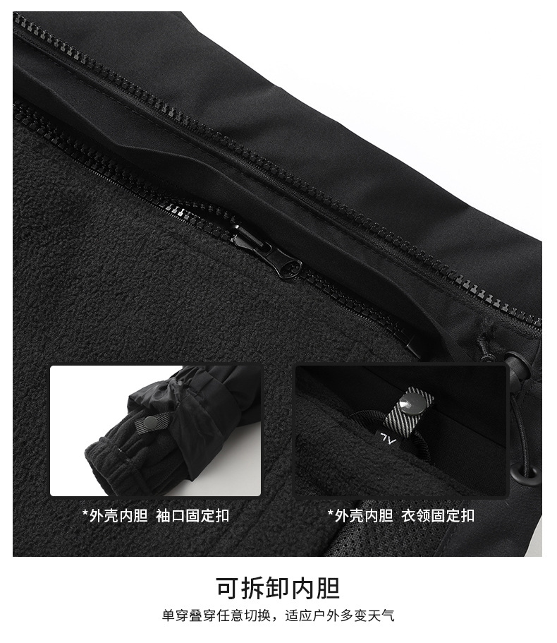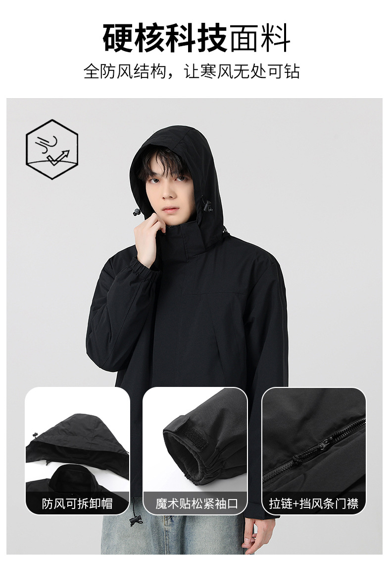 Venta directa transfronteriza 3 - en - 1 chaqueta de manga larga al aire libre desmontable chaqueta de montaña encapuchada de invierno a prueba de viento abrigo de asalto