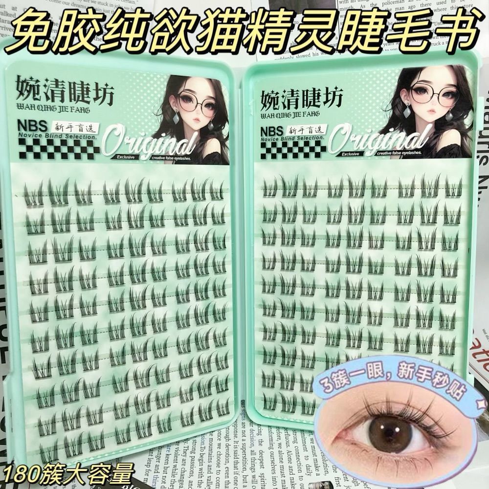 Gran capacidad sin pegamento sin desprendimiento puro deseo gato elfo pequeño gato salvaje natural orejas gatitas pestañas falsas autoadhesivas la princesa perezosa