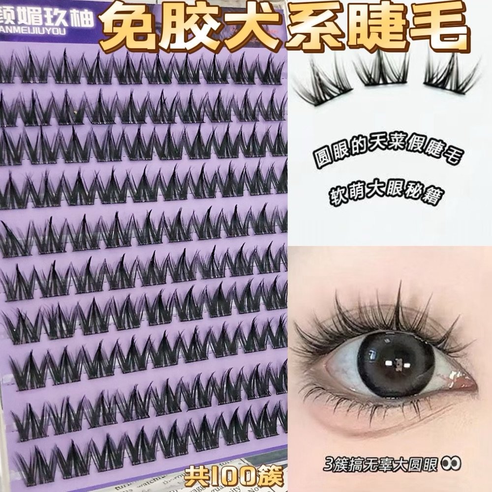 Nuevo tipo de pestañas falsas de perro sin pegamento, lindo lindo, inocente, ojos grandes, pestañas falsas sin pegamento, ultra suave y gruesa.