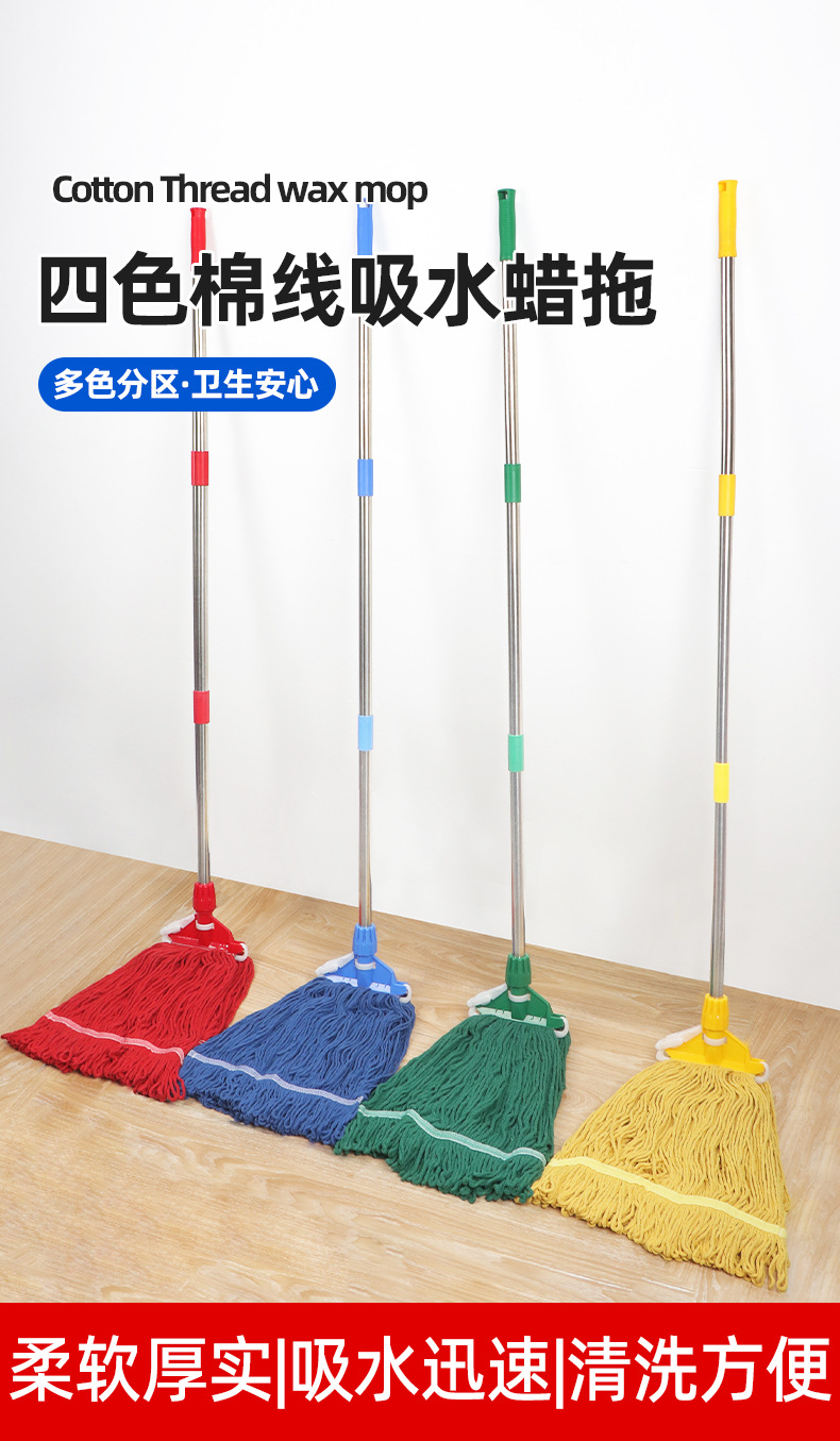 Tres secciones de barra de acero inoxidable trapeador de cera de plástico pinza de algodón de cuatro colores trapeador de absorción de agua reemplazo trapeador de comercio electrónico transfronterizo mayorista