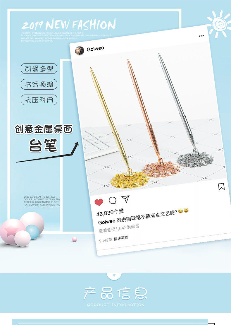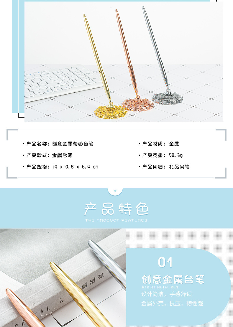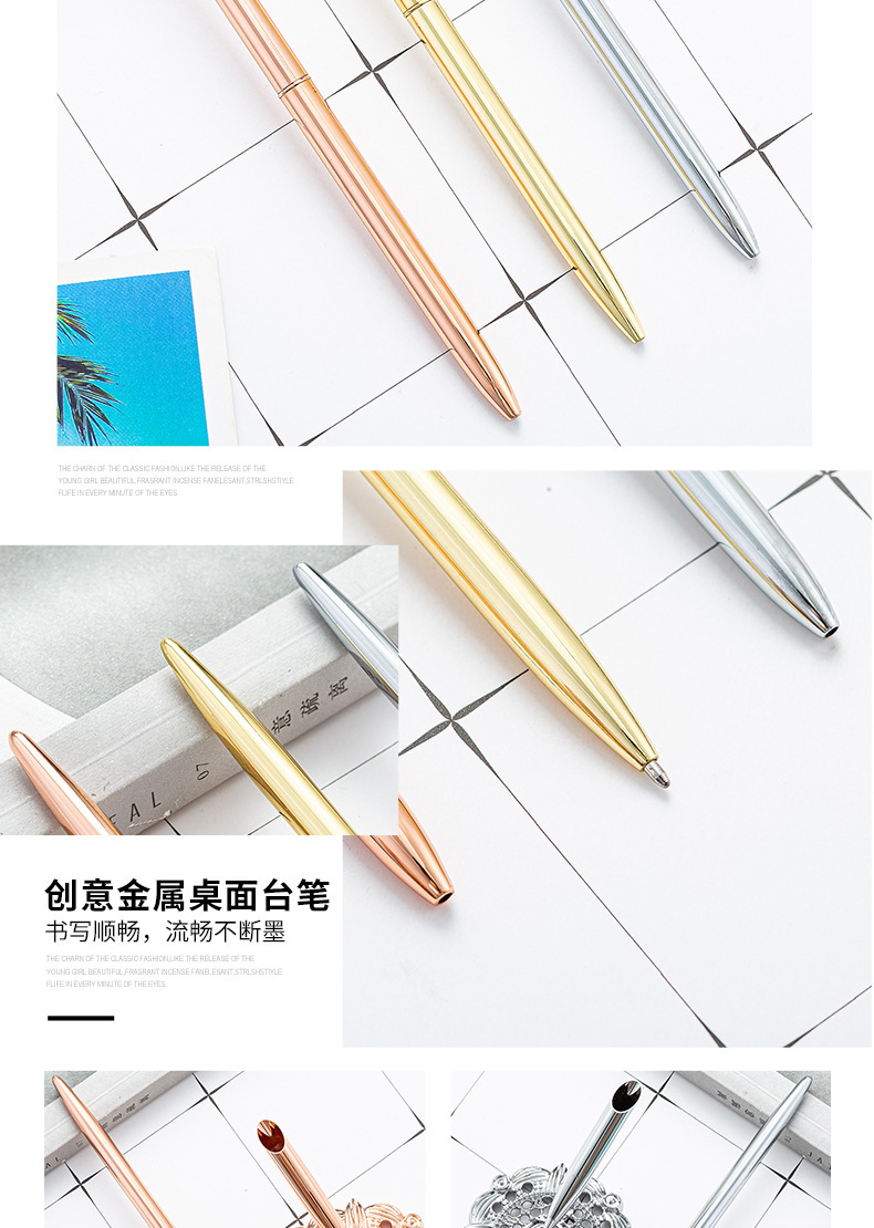 Bolígrafo de mesa de firma para oficina comercial Bolígrafo con base de metal galvanizado Bolígrafo de mostrador de banco de hotel Bolígrafo publicitario de regalo