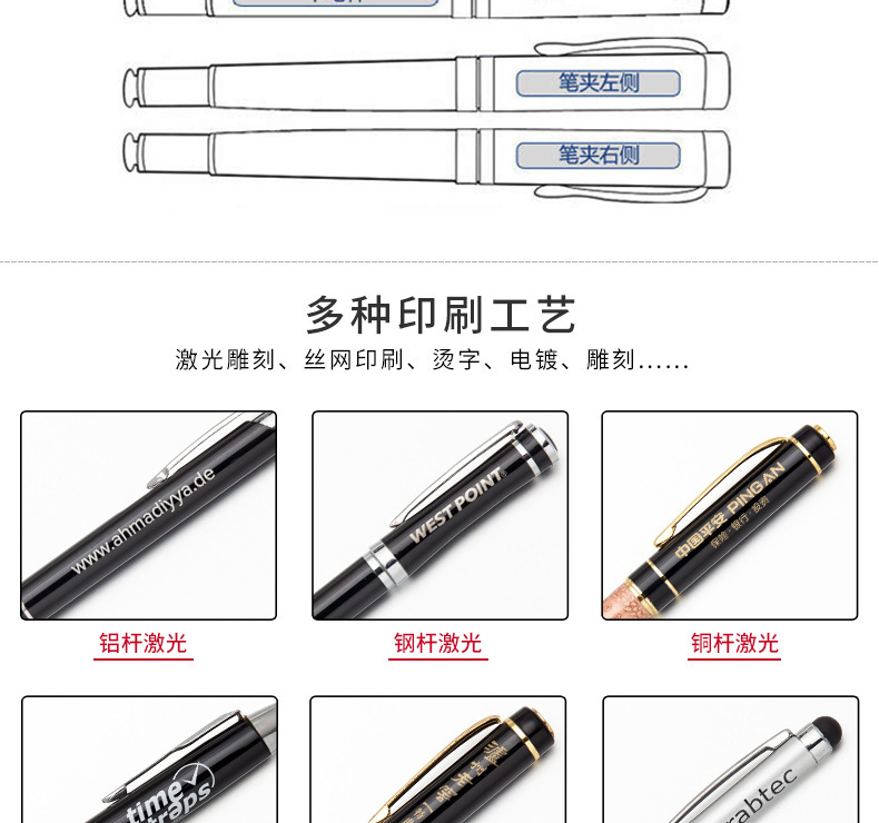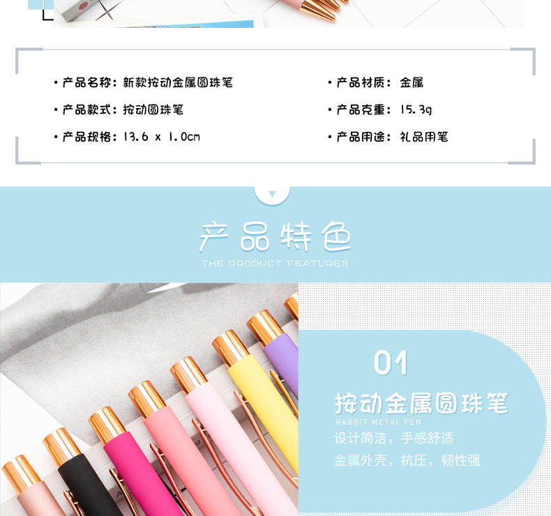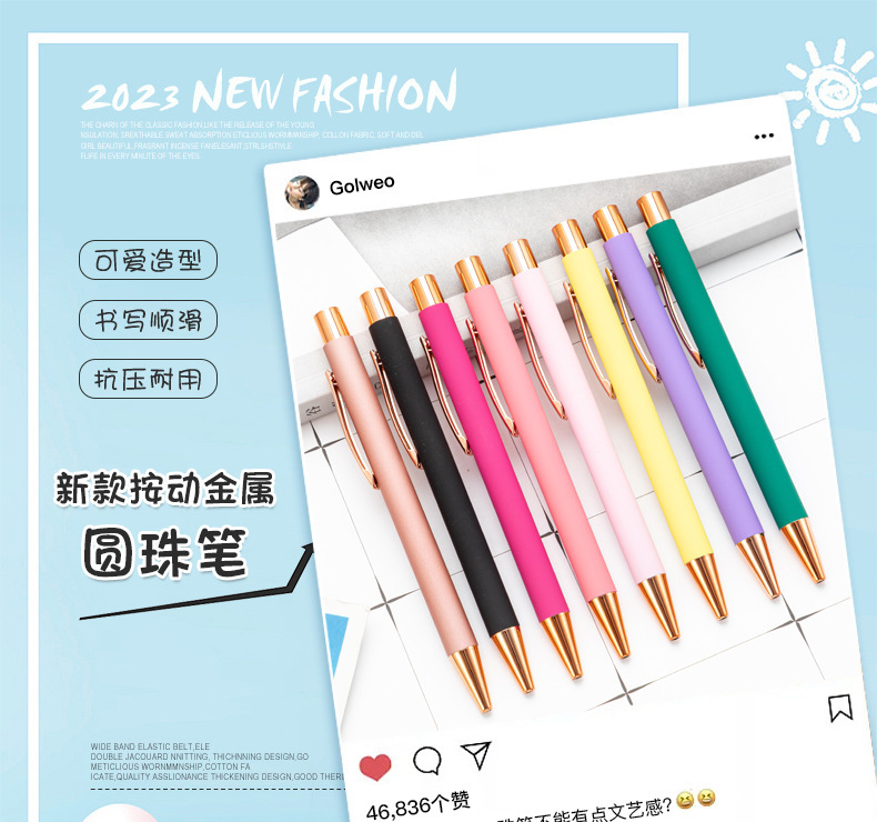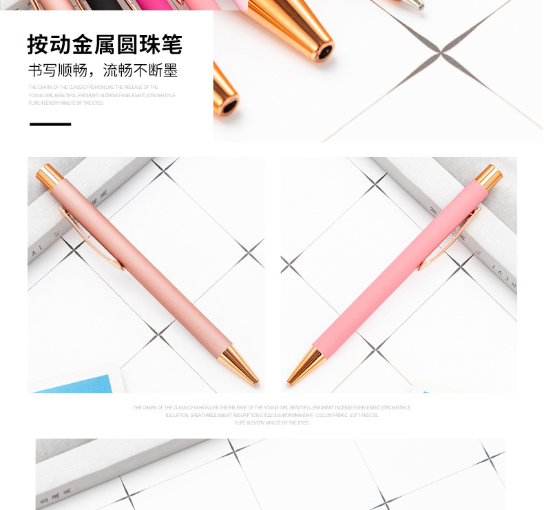 Presione bolígrafo de spray de pegamento de escritorio de papelería para estudiantes publicidad de regalo de bolígrafo de metal multicolor logotipo imprimible