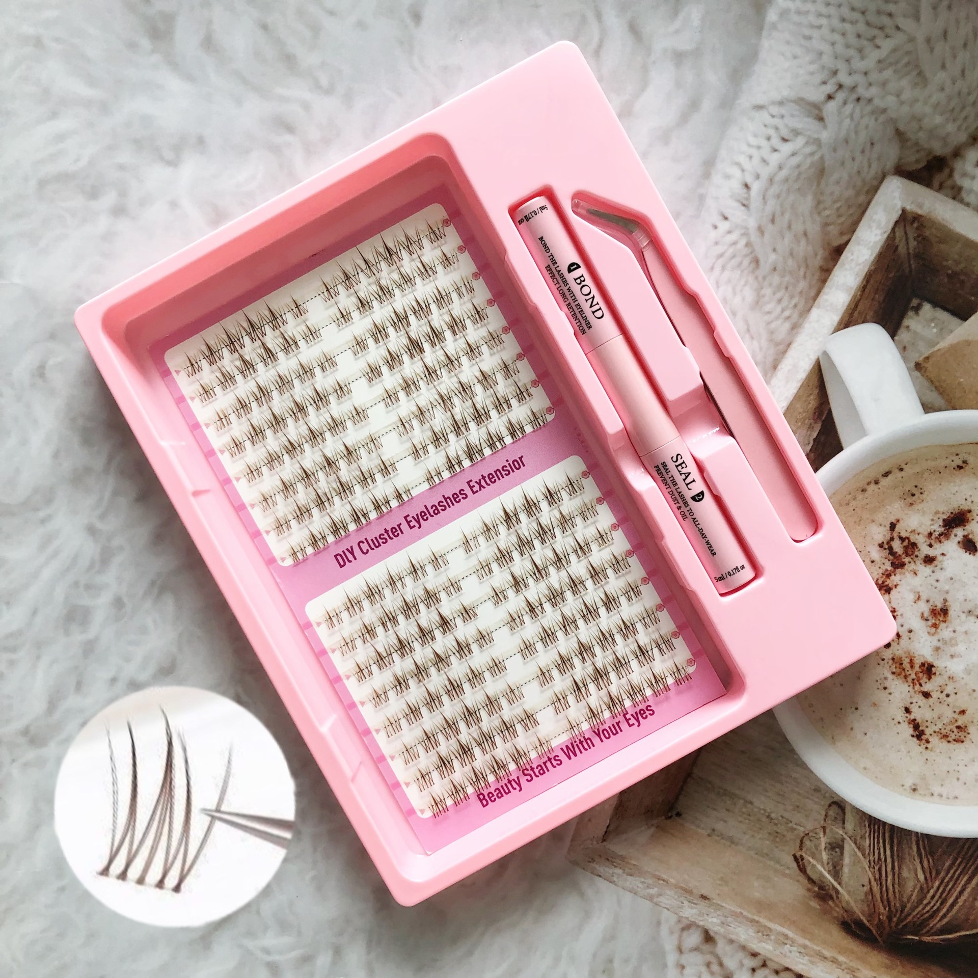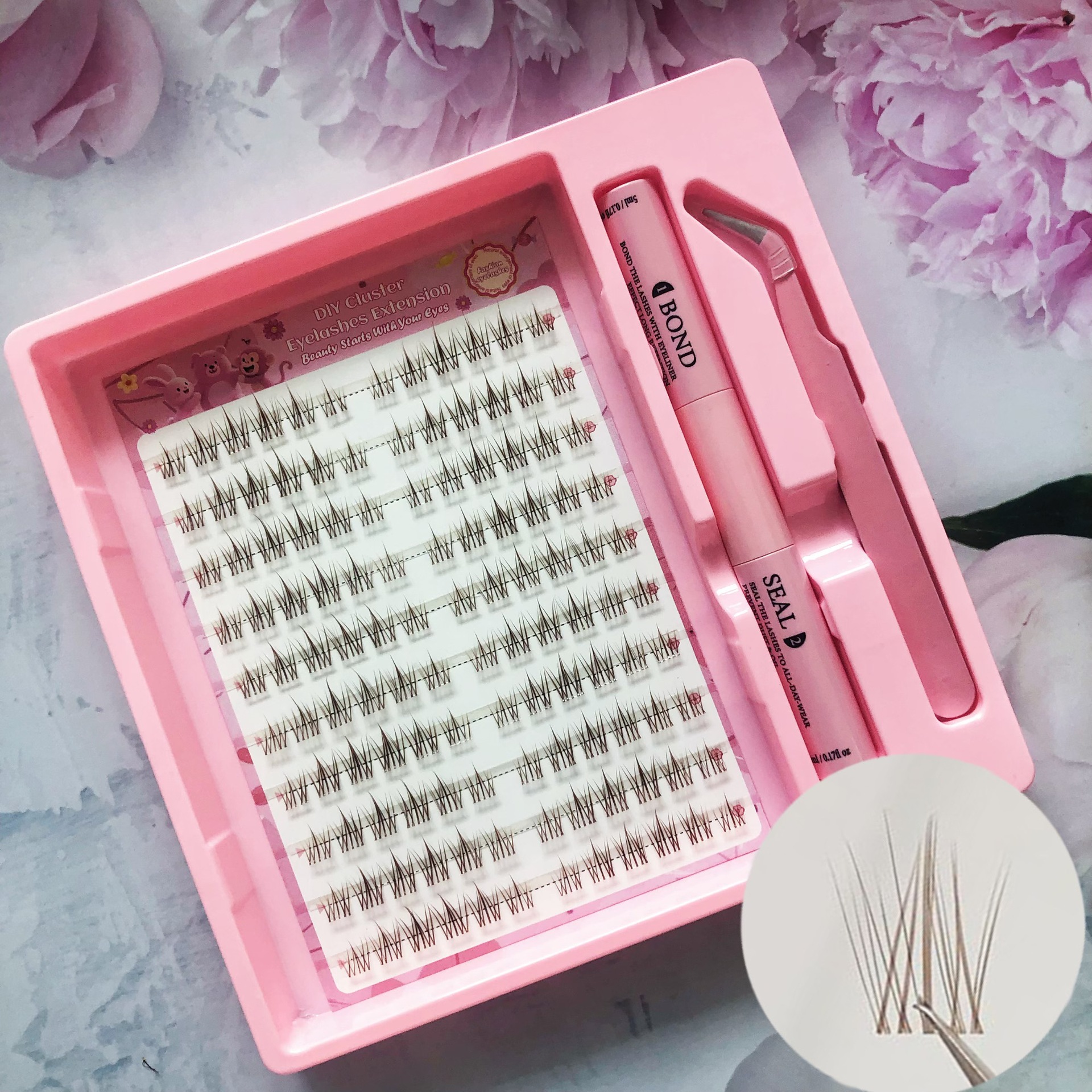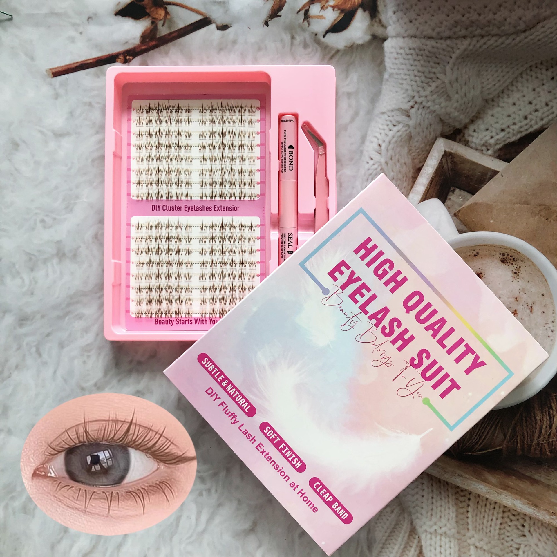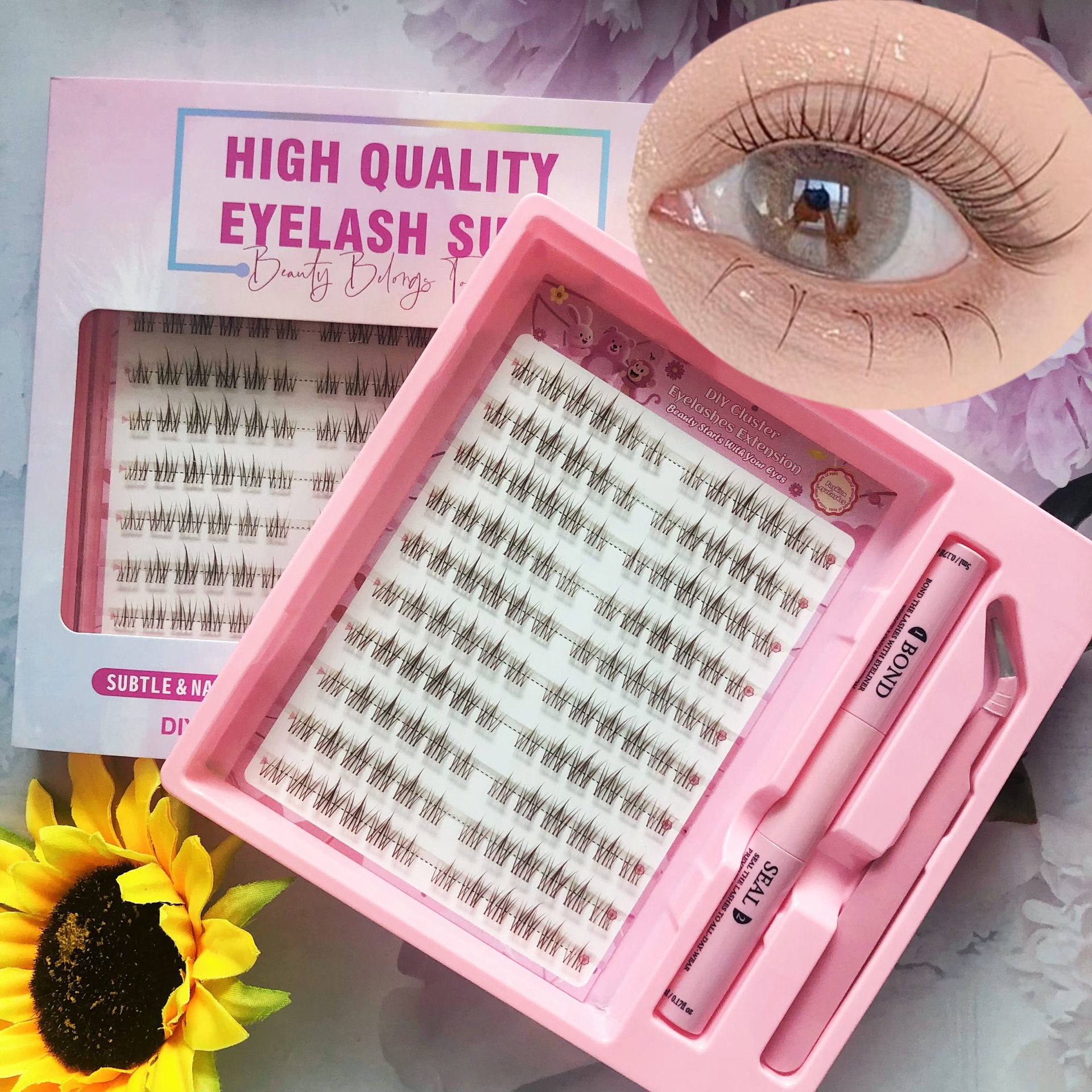 Conjunto de pestañas falsas transfronterizas de gran capacidad nuevos productos negros marrones pestañas de sol segmentación pestañas falsas perezosas