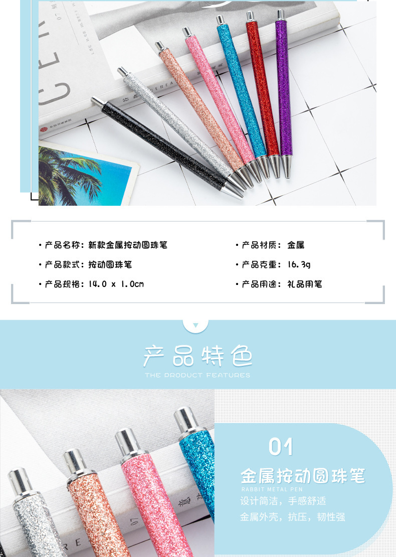 Presione multicolor prepucio metal lápiz flash tiza mayorista puede imprimir logotipo publicitario de alto valor de cara regalo lápiz de bola de metal