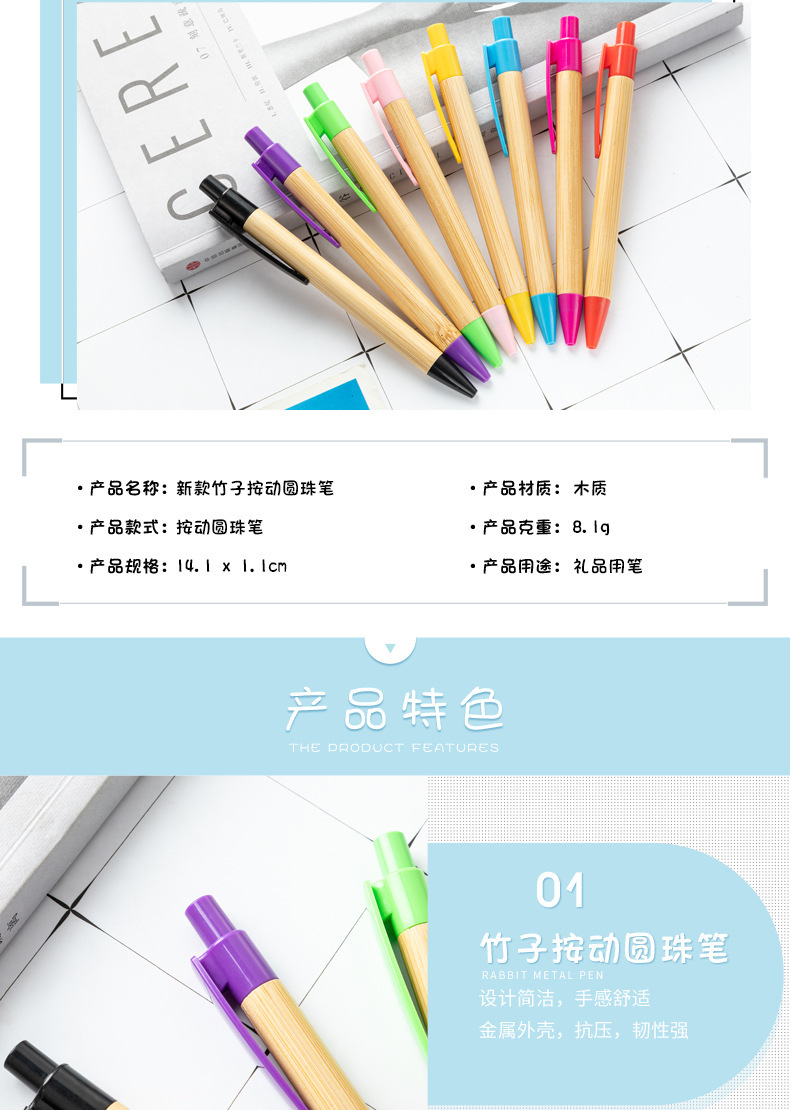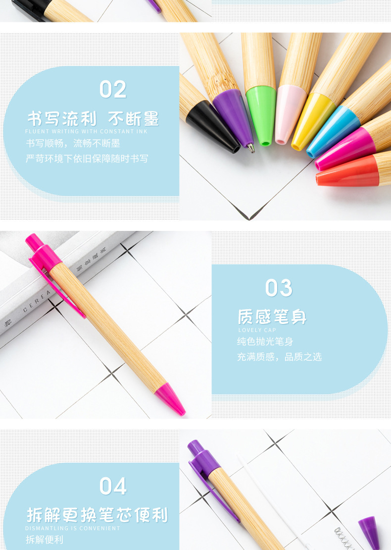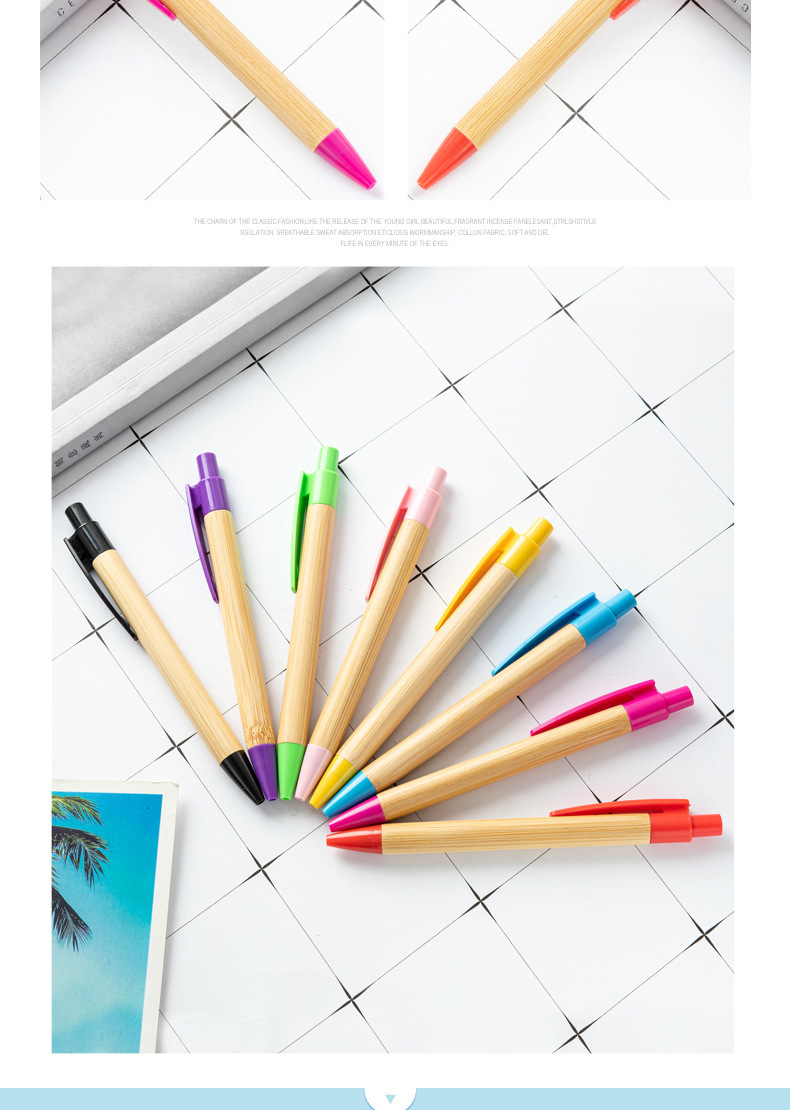 Multicolor bolígrafo de bambú de acción ambiental bolígrafo de madera de bambú al por mayor logotipo imprimible bolígrafo de regalo de publicidad de bambú