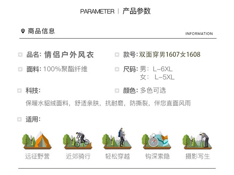 | Campaña aplicable | Escalada, general, senderismo, camping, pesca, equitación, montañismo al aire libre, viajes, excursiones, caza, ciclismo, autoconducción, otros |