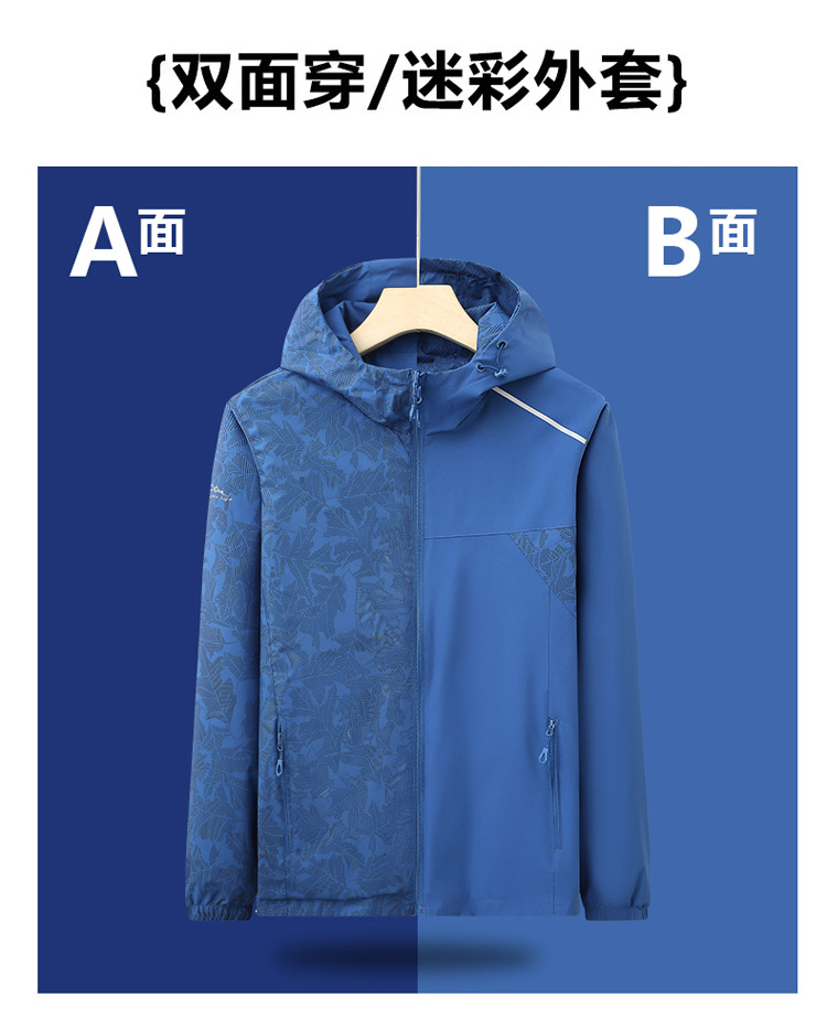 Primavera y otoño doble cara vestir ropa de asalto mujer al aire libre una sola capa de chaqueta con sombrero a prueba de viento camuflaje traje de montaña chaqueta de manga larga hombre