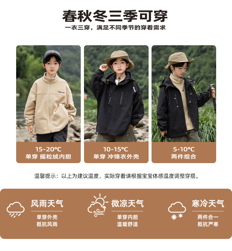 Primavera y otoño 3 - en - 1 chaqueta de asalto para niños de otoño impermeable chaqueta a prueba de viento para niñas de otoño y invierno chaqueta desmontable