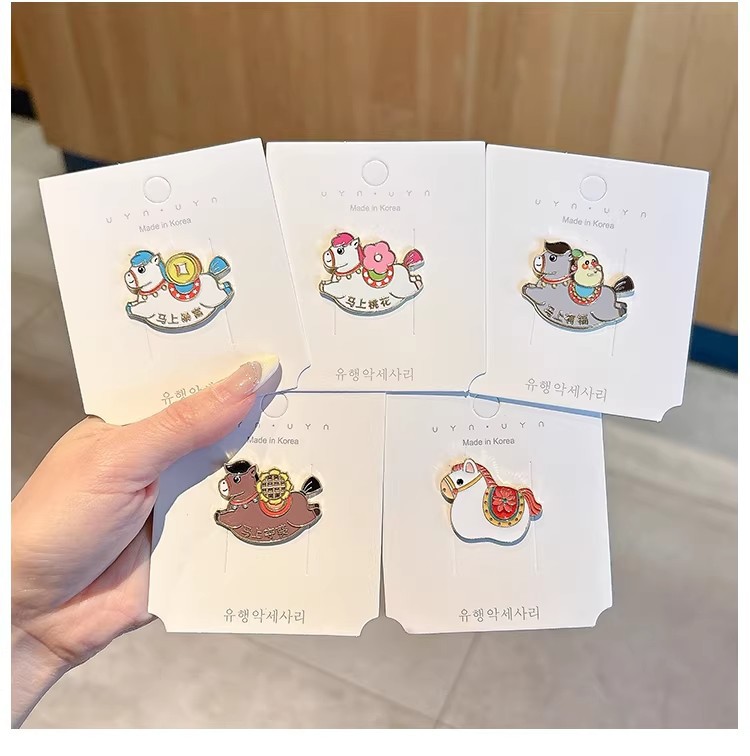 Broche de dibujos animados de Año Nuevo adorable año del caballo pequeño regalo pin accesorios insignia de Año Nuevo ropa decoración al por mayor
