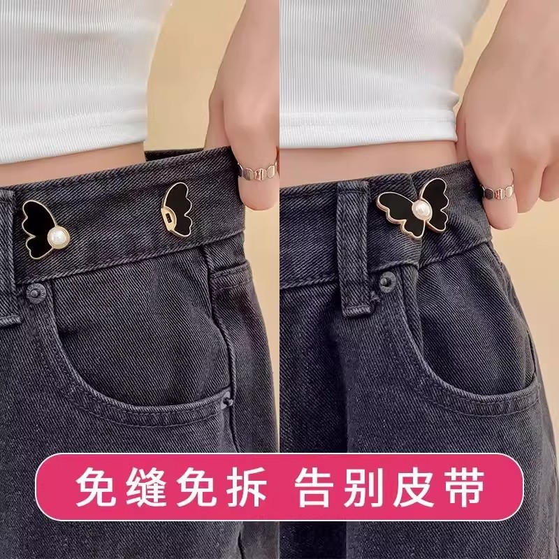 Pantalones de jeans de cintura, botones de cintura ajustados, botones ajustables fijos