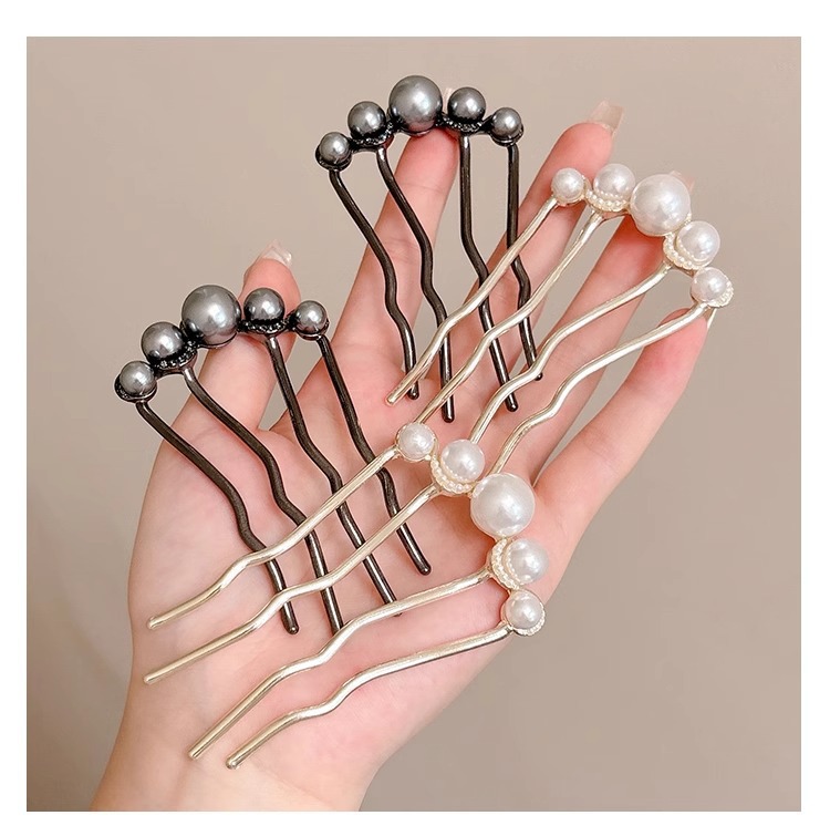 Nuevo estilo chino en forma de U pinzas de cabello de perlas temperamento elegante bandeja pinzas de cabello pein bola tocado pinzas de cabello artefactos mágicos pinzas de cabello pein