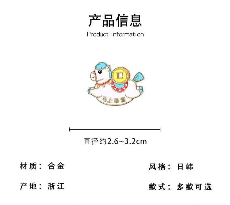 2026 año del caballo broche año nuevo año de la vida adorable cartón de dibujos animados insignia de metal bolsa ropa decoración regalos al por mayor