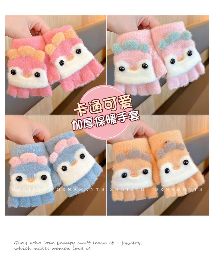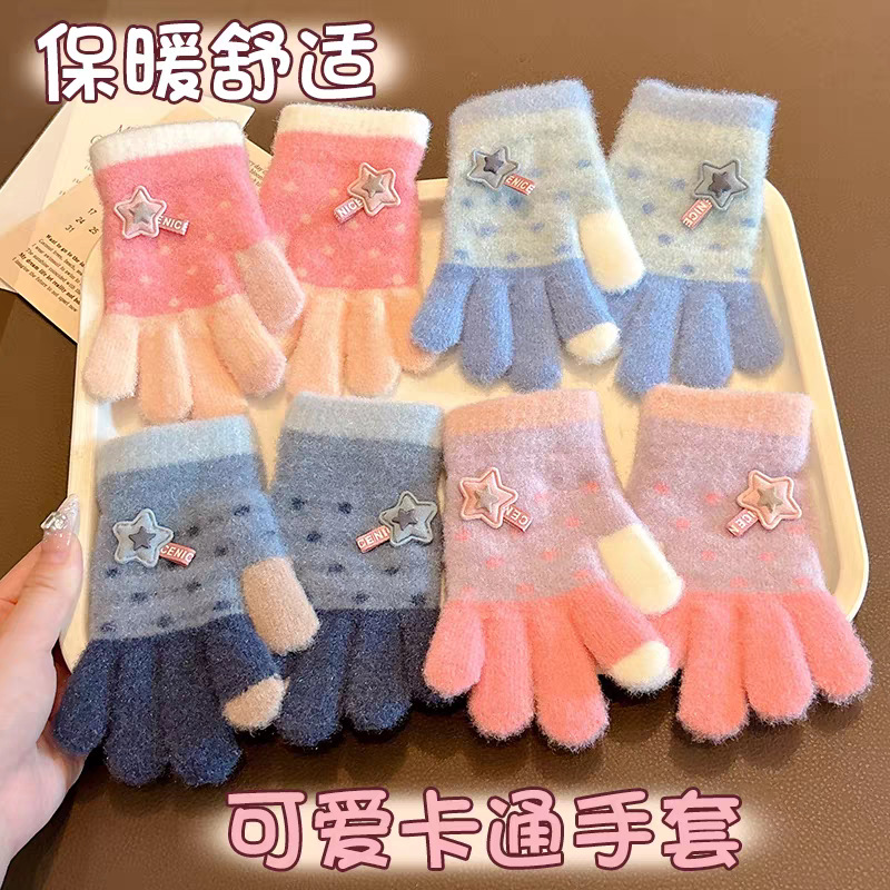 Niños guantes de medio dedo estudiantes de primaria caliente a prueba de frío guantes de dedo de punto 2025 nuevo guantes a prueba de viento y frío
