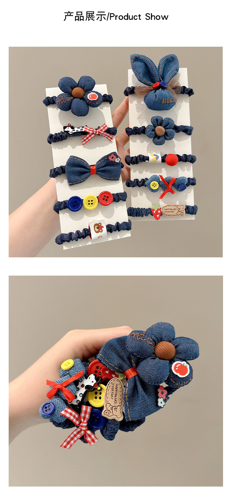 | Color | 1 # botón letra conejo anillo de pelo, 2 # botón colorido flores osos anillo de pelo |
