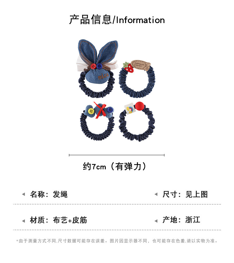 Tejido de vaquero no daña cabello cuerda de cabello niñas lindos anillo de cabello joyas de cabello de cola de caballo
