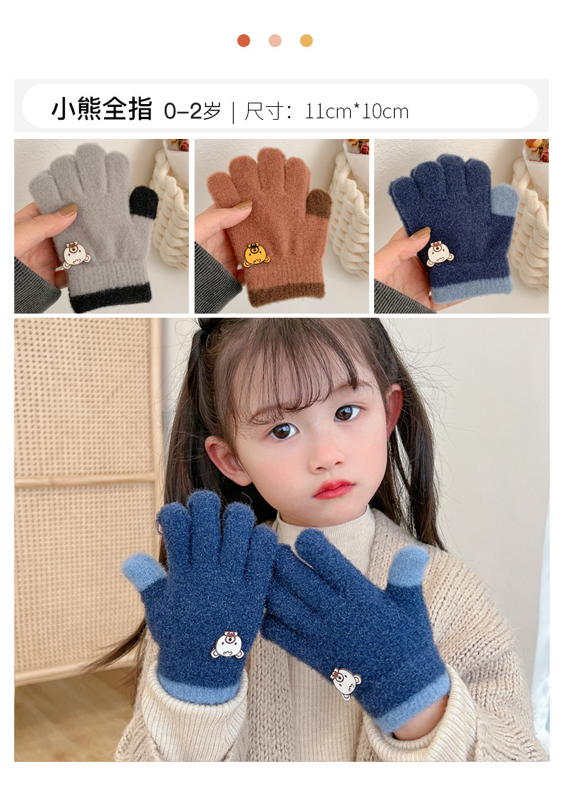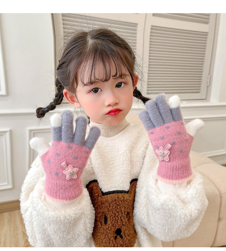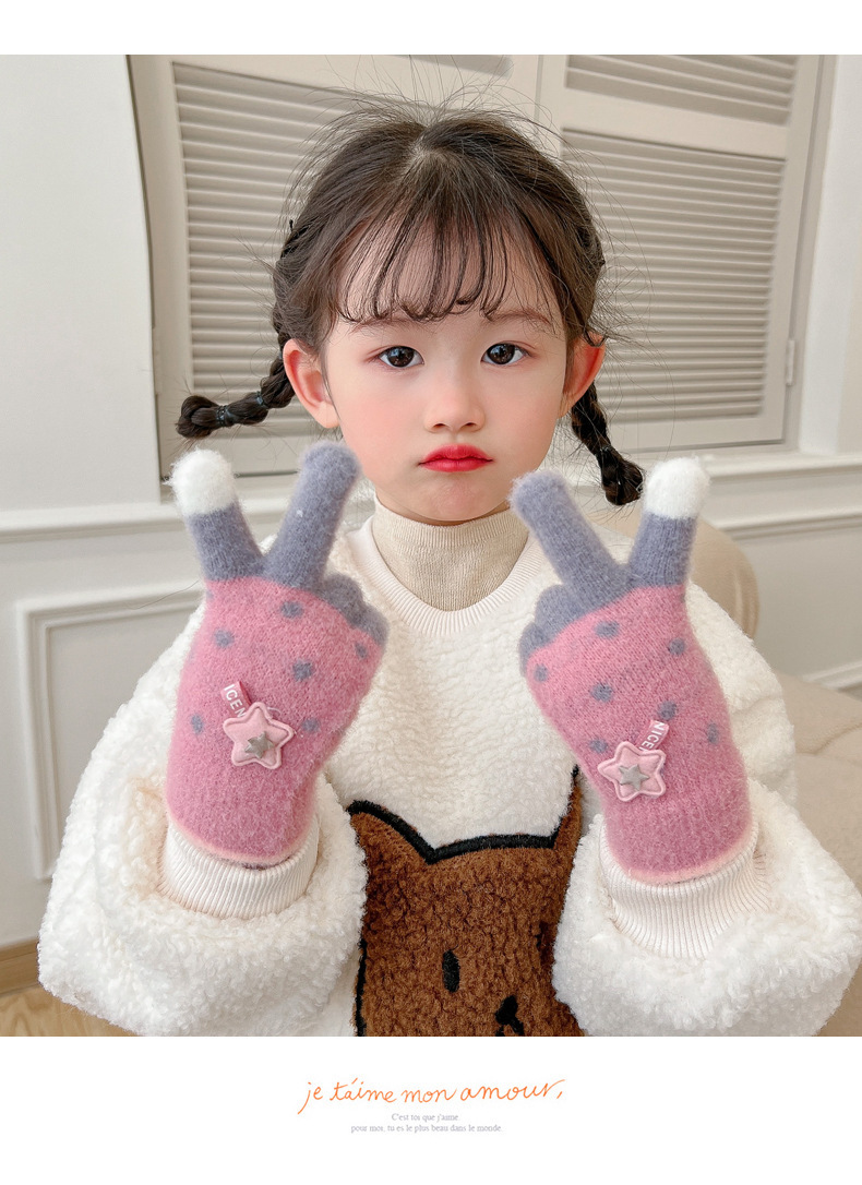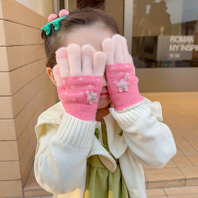Invierno guantes de dedos para niños niños lindos guantes de punto de dedo para niños niños calientes niñas y niños de lana guantes de punto para estudiantes