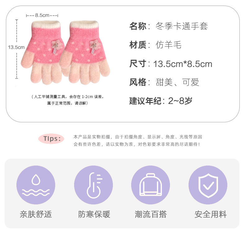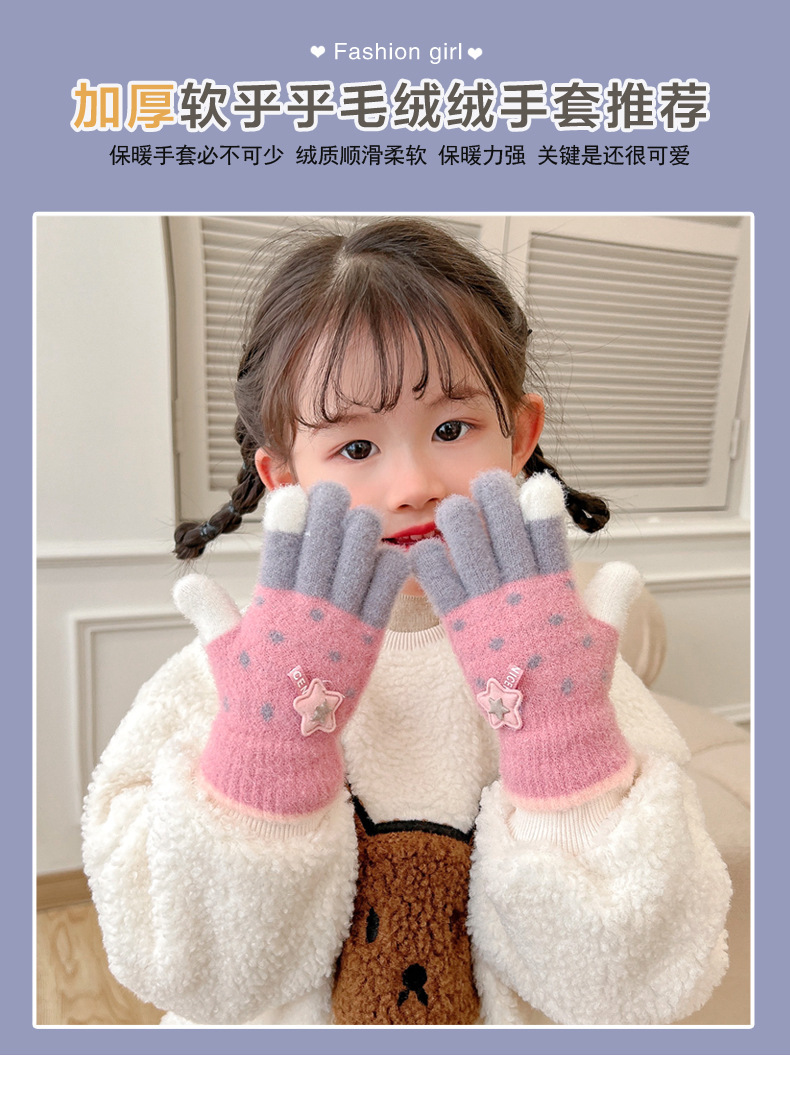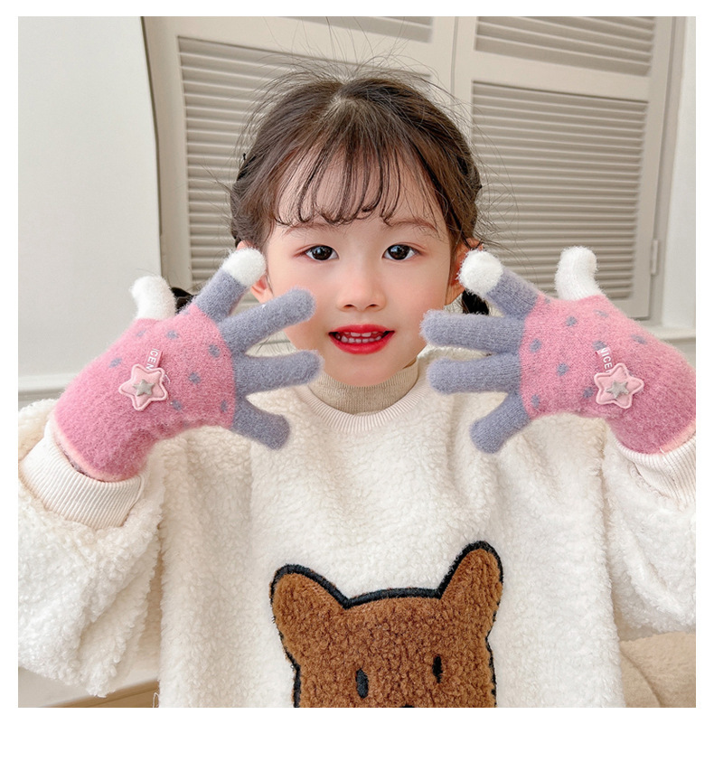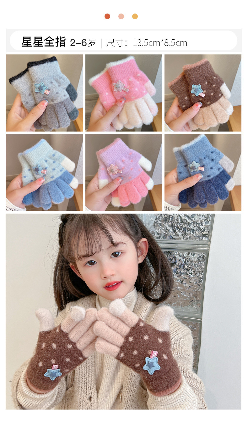 Invierno guantes de dedos para niños niños lindos guantes de punto de dedo para niños niños calientes niñas y niños de lana guantes de punto para estudiantes
