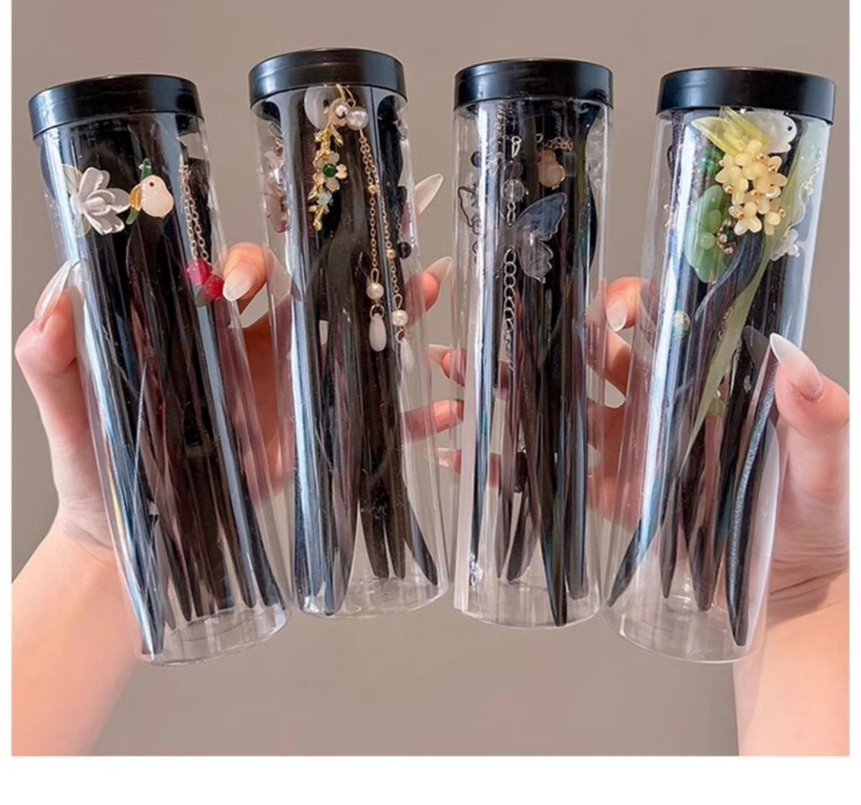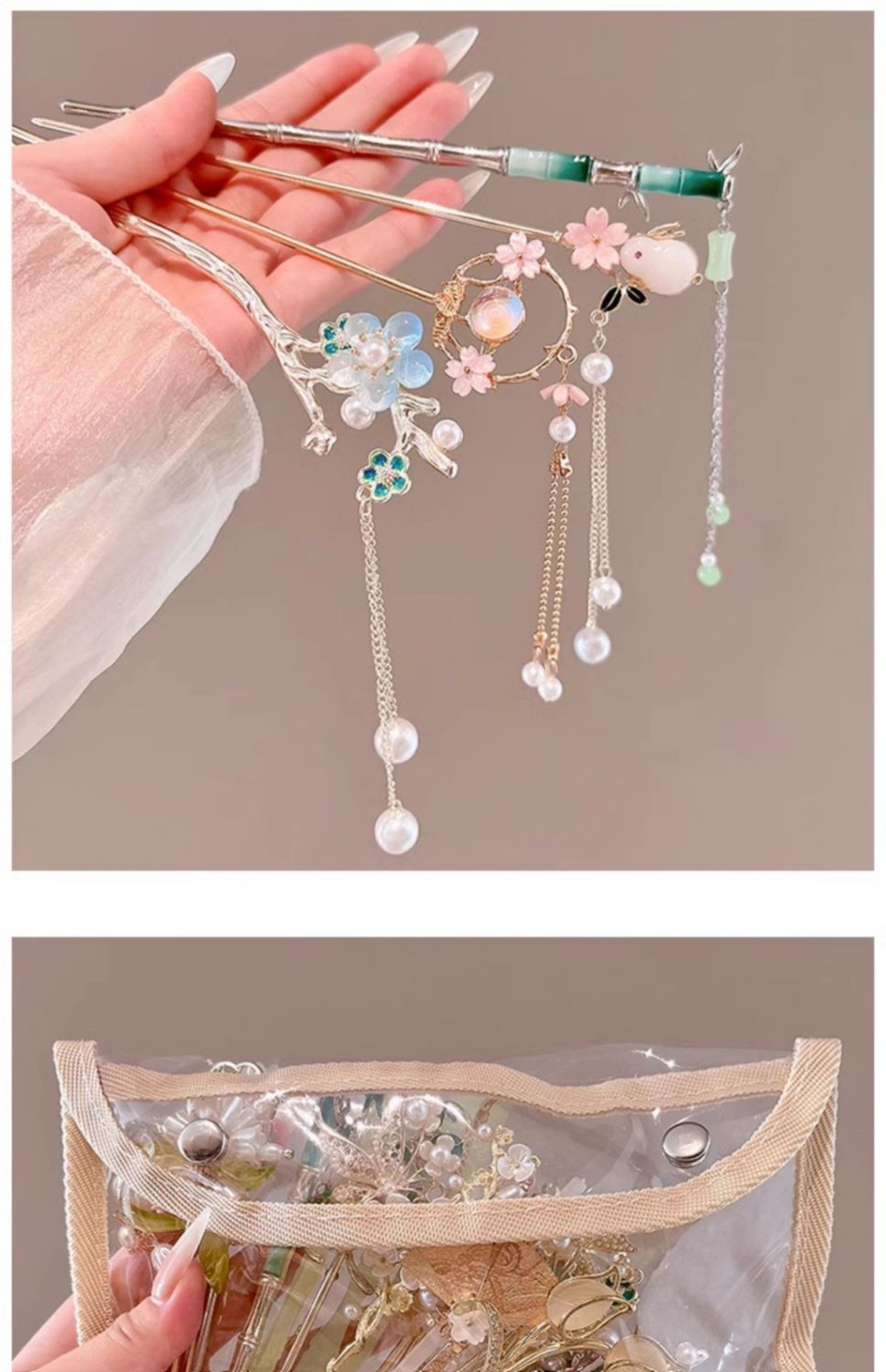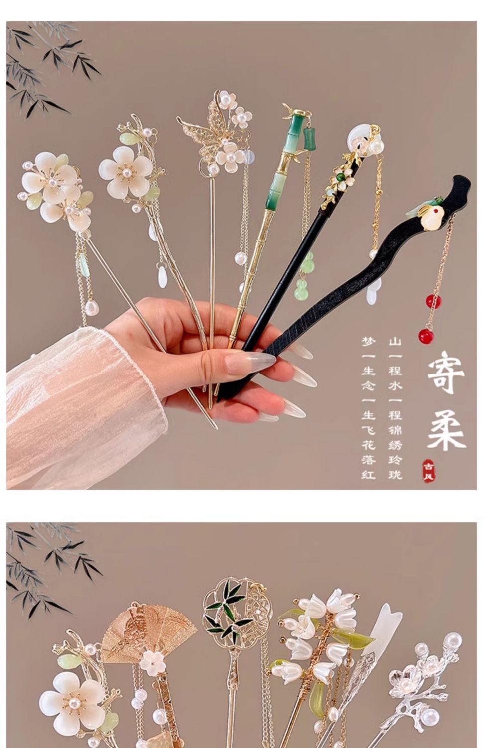Retro simple nicho de alta estética oriental diseño de cabello de flores de frascos de estilo antiguo cabello