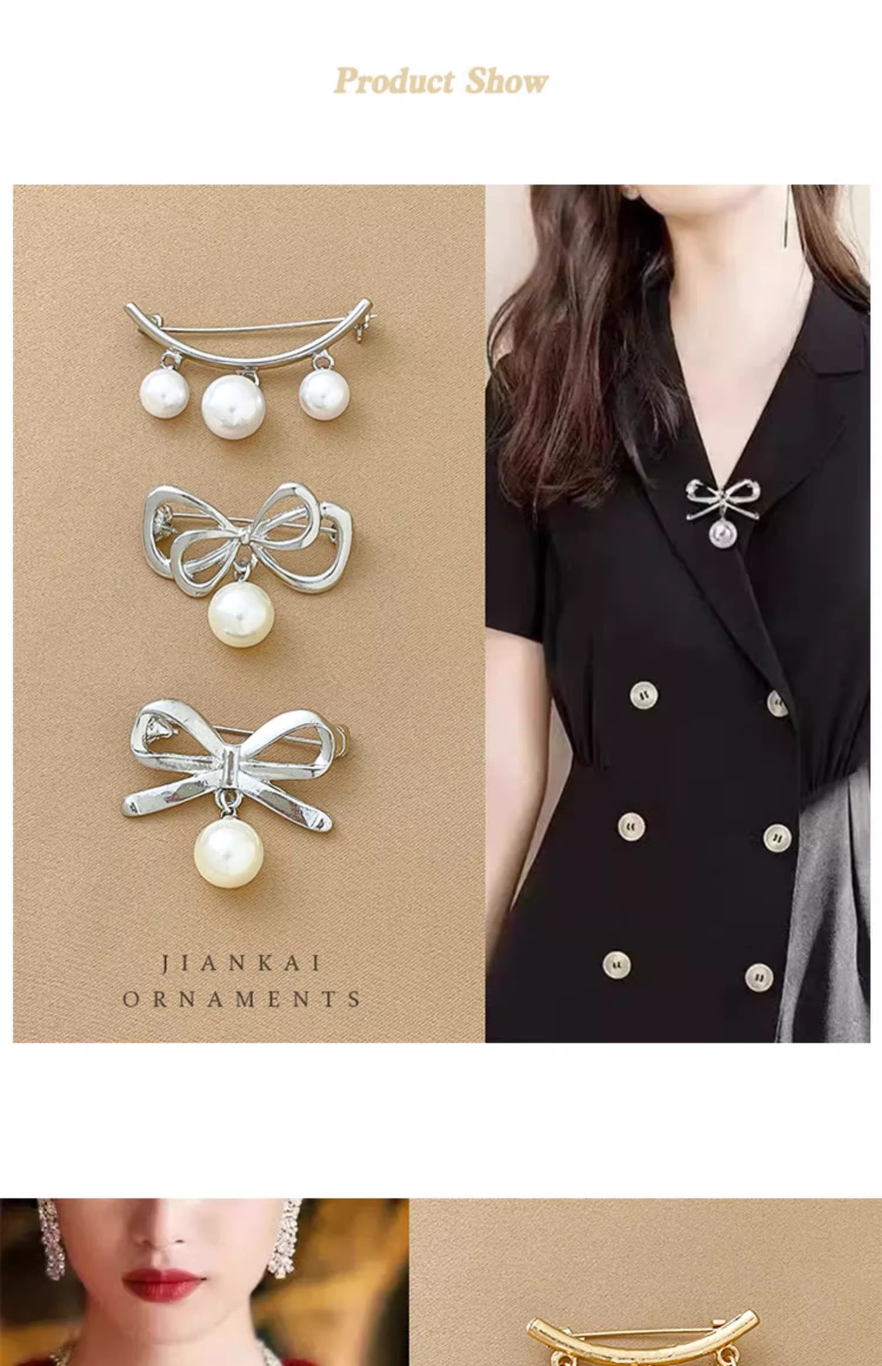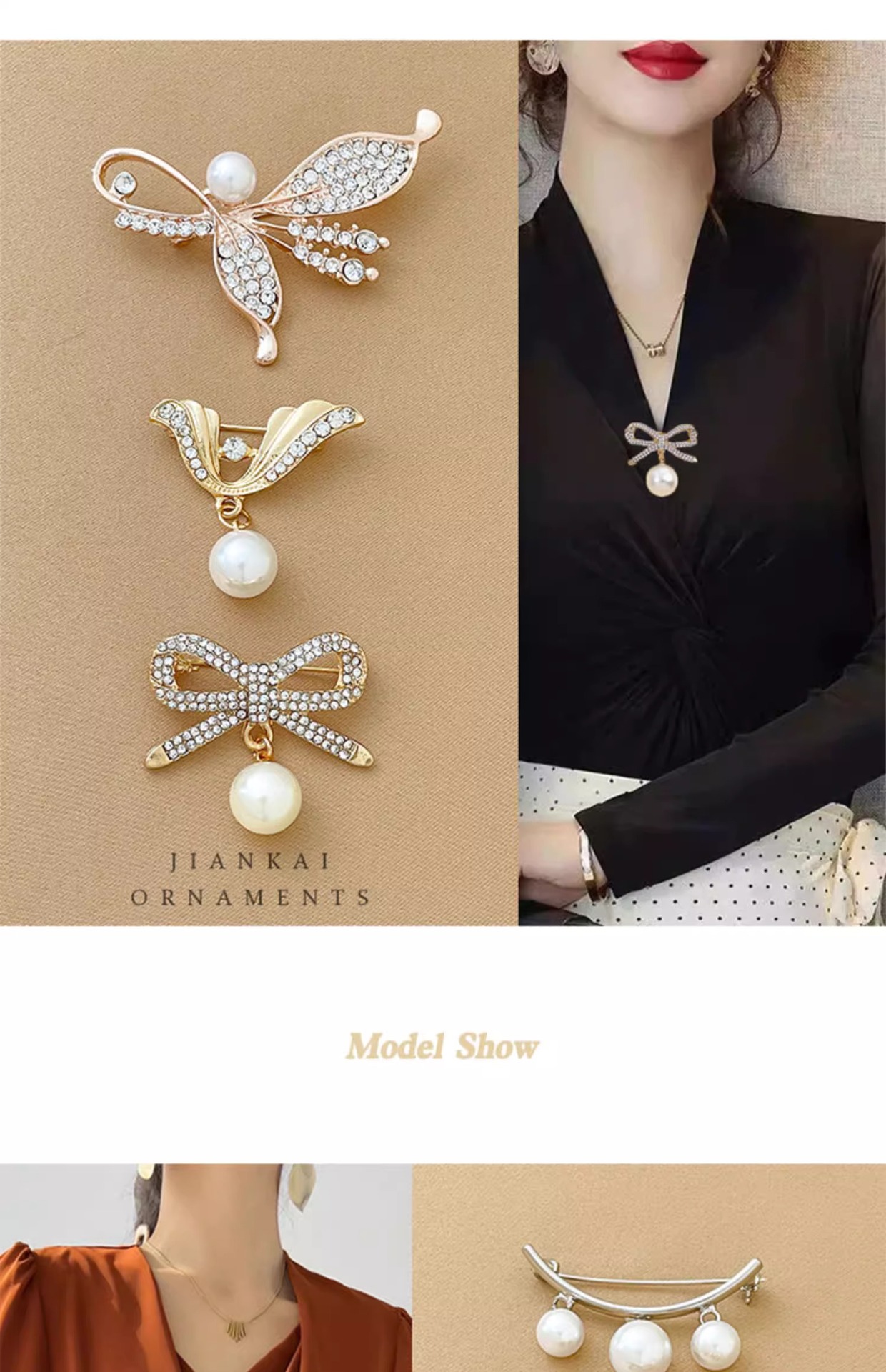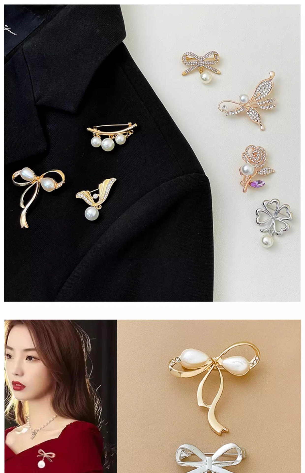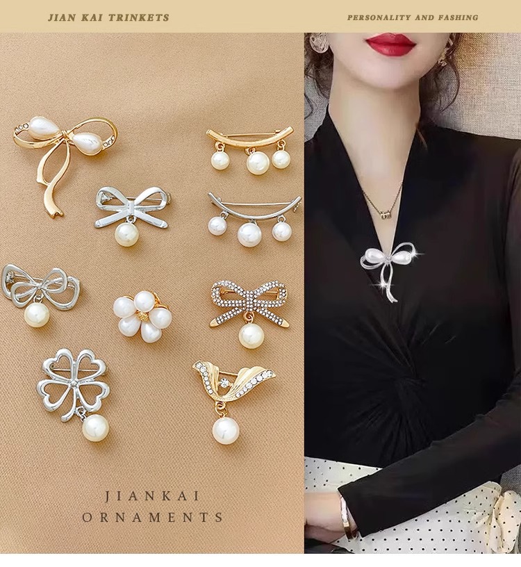 Brillo de decoración de alta calidad para ropa de mujer fijo pin anti-perla botón de brillo accesorios de flores de pecho de perla bufandas de seda