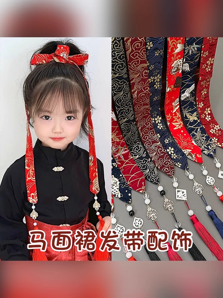 Niñas con falda de caballo 2024 nuevo estilo antiguo accesorios de ropa Han estilo chino nuevo tocado de estilo chino flotante correa de pelo para niños