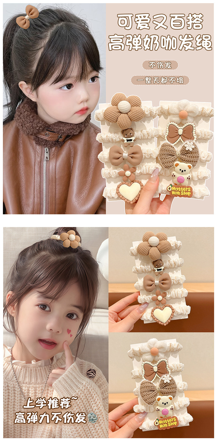 Otoño y invierno niños leche de café flor cabello anillo de cabello chica lindo cabello de cabello de alta elasticidad elástico