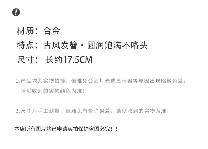 | Color | 95#绿花发簪,8#三叶红珠流苏发簪,3#珍珠扇形银色,1#云水棠,1#木发簪,43#素绾簪—风铃动,23#黑色梅花发簪,23#金色玉兔吊坠,1#深灰色,2#银白色,10#白玉花流苏发簪,13#鹿角风铃发簪,16#玉兔黄花黄色小花流苏,17#玉兔白花黄色小花流苏,26#梅花珍珠发簪-金色,30#扇子发簪,47#绿玉水滴坠兔子发簪,7#戏碟舞,4#春波绿,12#新铃兰花流苏2,79#珍珠花藤发簪-金色,37#祥云发簪,39#一枝梅暗红发簪-枪黑色,42#钰色花苞发簪,45#玉兰花发簪,48#白玉镂空圆坠兔子发簪,18#烟雨兰,80#白玉天之发簪,2#金发簪,62#白玉盘龙竹湖蓝叶,63#珍珠梅花发簪-银色,64#绿色风铃发簪,76#一朵栀子花,78#三花珍珠流苏发簪-金色,83#如意玉桂兔子发簪,84#玉兔折桂发簪,87#西瓜红杏叶枝叉流苏发簪-银色,88#宝莲灯红色-可亮灯,1#金色郁金香猫眼,4#魔法星域发簪,5#水钻蝴蝶花朵流苏,14#双花腾龙发簪,16#白玉双兰花腾龙发簪,17#白玉双花吊坠腾龙发簪,20#梅花粉色单花珍珠流苏发簪,28#白色短吊坠,29#白色长流苏,38#金色兔子发簪【白】带灯,41#不辞青山书法平安扣发簪(袋装),49#圆灯笼发簪,1#桃花发簪,9#紫光彩,14#凭栏诗,17#牡丹容,18#飞花梦,4#两朵固定玫瑰植绒发簪,1#白色小花发簪,6#红色小花黑色圆珠发簪,7#粉色小花红色吊坠发簪,10#红色植绒小花发簪,12#白色小兔五角星发簪,13#紫色银杏叶红宝石发簪,14#三叶草醋酸圆珠流苏发簪,68#凤簪灯笼发簪,73#祥云黑珠发簪,2#寒烟翠,3#碧云天,8#蓝尾碟,16#报春红,3#绿叶花,2#红叶花,5#追月发簪,12#流云记【云芯】,7#珍珠金属发簪银色,4#圆形五瓣花发簪,2#紫色花朵珍珠流苏发簪,50#葫芦灯笼发簪,89#宝莲灯蓝色-可亮灯 (袋装),32#蝴蝶流苏发簪-金色@,37#杏叶流苏发簪-金色,13#白色莲花珍珠花金钗流苏发簪,72#梅花枝珍珠花流苏发簪-金色,8#云歌玉水,26#祥云如意新中式发簪,79#玫瑰花枝流苏发簪-金色,16#合金花,53#竹节玉环发簪,10#折扇-珍珠流苏-金色,27#蝴蝶流苏发簪,23#竹节葫芦发簪金色,11#合金6朵珍珠花流苏吊坠-金色,11#人间月,28#珍珠荷花发簪-银色,76#黄色杏叶枝叉流苏发簪-金色@,5#珍珠扇形金色,6#卷珠帘,21#粉色花朵吊坠发簪,75#玉兔粉花流苏发簪-金色,88#宝莲灯绿色-可亮灯,17#宫灯可亮灯发簪-金色,2#桃花韵流苏发簪,33#木质追月流苏发簪,35#凤首发簪,36#双荷花短吊坠双南瓜-银色,51#白玉风铃发簪,52#兔子珍珠发簪,25#烟雨兔,82#绿玉天之发簪,69#圆环水滴流苏发簪,74#三花水钻珍珠金叉流苏发簪-金色,7#贝壳流苏发簪,10#竹节流苏金色,11#白玉色8字白玉吊坠发簪,12#粉色花环猫眼流苏发簪,26#花朵发簪,43#素心追月书法平安扣发簪(袋装),16#花如锦,2#蓝叶花,7#飞花发簪,4#双碟发簪,3#墨蝶发簪,4#水滴蝴蝶发簪,26#花朵扇子吊坠发簪,5#圆满发簪,2#牡丹花发簪,8#柿子发簪,28#绿色长流苏款,19#竹节流苏银色,9#竹节银色,98#白玉兰花双花流苏发簪-金色,91#月亮湖蓝水滴吊坠流苏,25#绿竹叶发簪-银色,23#荷花双南瓜流苏吊坠-银色,42#栀子花香,6#梅花银色,19#盘龙竹湖蓝色叶子发簪,5#两朵花发簪,16#如意挂坠发簪,38#双荷花短吊坠双南瓜-金色,7#铃兰吊坠-玉白,12#贝壳花流苏发簪-金色,4#粉色郁金香流苏,15#双竹子,6#铃兰吊坠-晴水,9#兰花流苏,3#盘龙竹玉竹发簪,76#粉色桃花发簪,71#白粉双花珍珠流苏发簪-金色,2#平安锁流苏发簪,74#金枝珍珠花流苏发簪-金色,22#梅花浅蓝单花珍珠流苏发簪,74#蓝色桃花发簪,3#圆扇竹节款,5#粉色双花粉色珠流苏发簪-金色,30#樱花,71#蝴蝶珍珠花流苏发簪-金色,18#蓝色双花流苏吊坠-金色,3#白玉烛发簪-银色,6#云歌晴水,3#一朵花植绒发簪,6#三朵固定玫瑰植绒发簪,5#红色山竹花植绒发簪,9#玫瑰花发簪长约18cm,10#铃兰花珍珠发簪长约17cm,11#双生玫瑰发簪约17.2cm,12#红色蝴蝶流苏发簪约17.5cm |