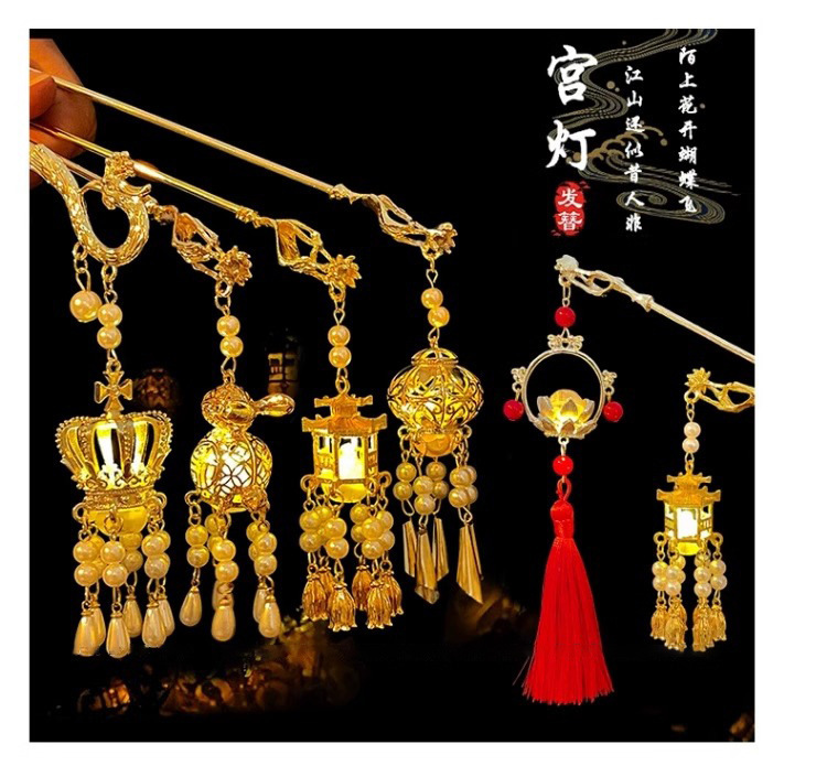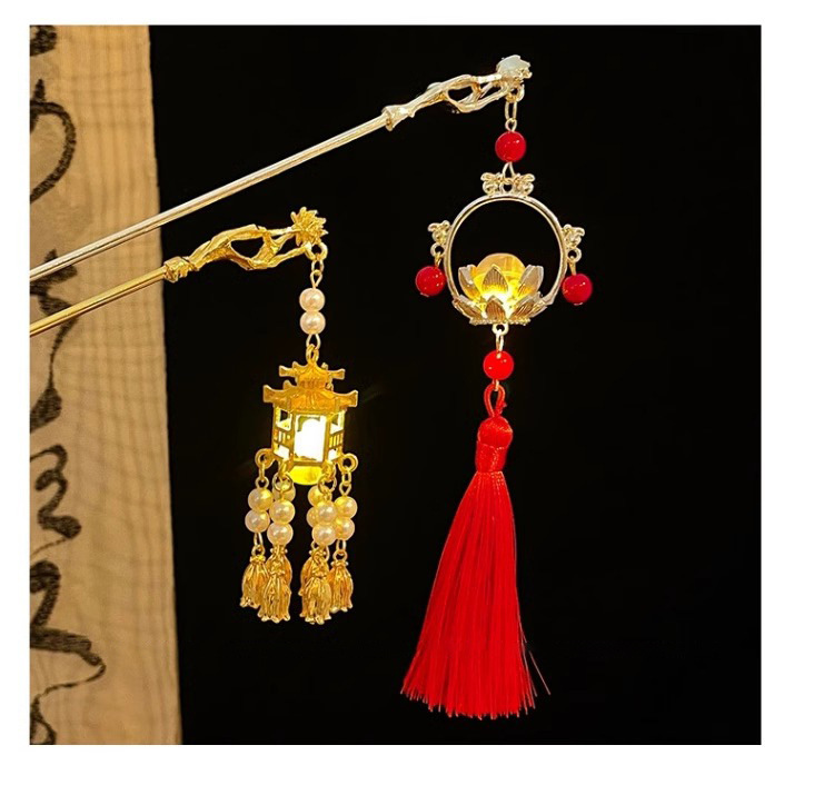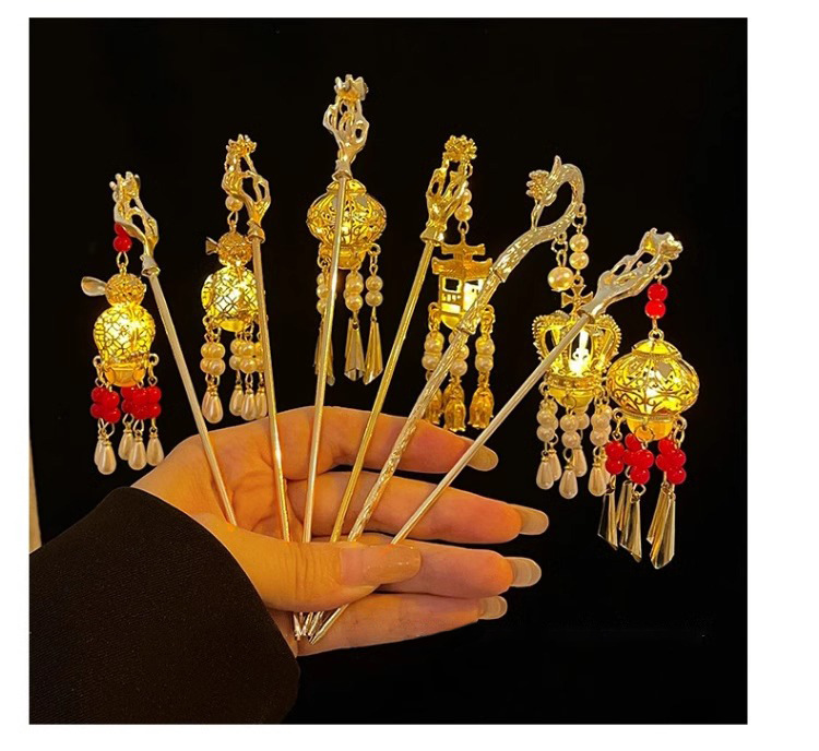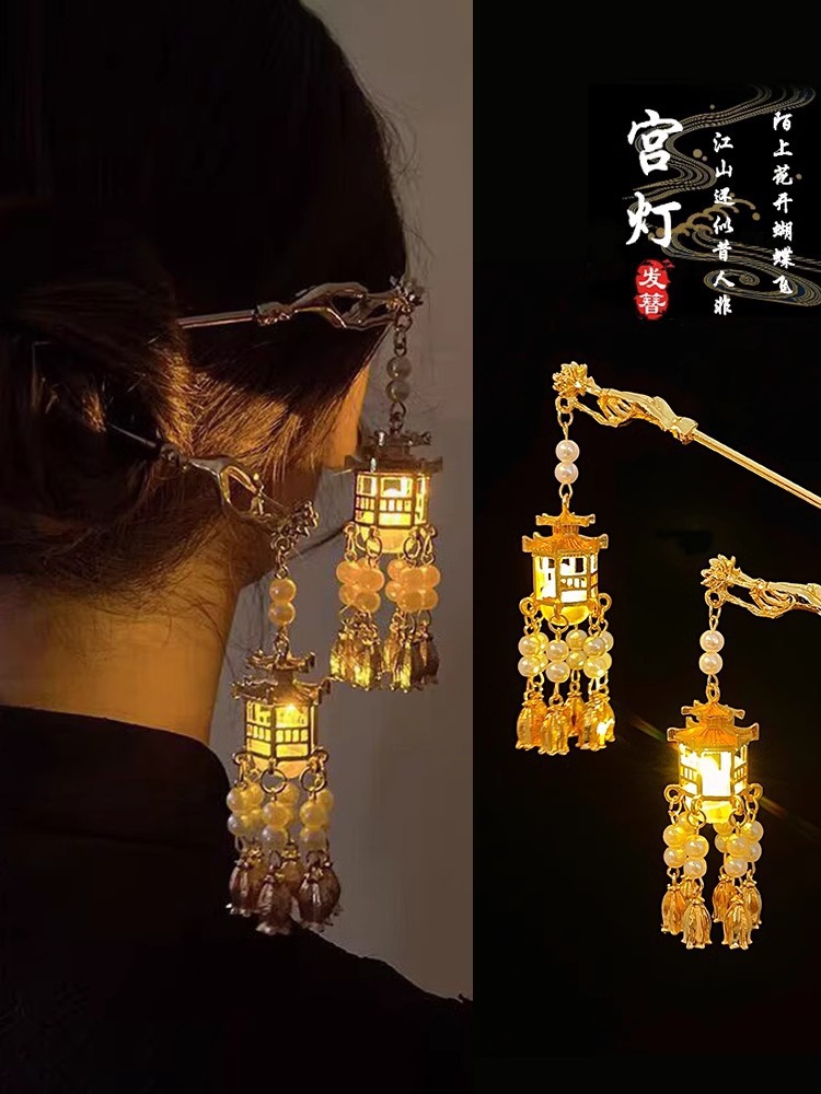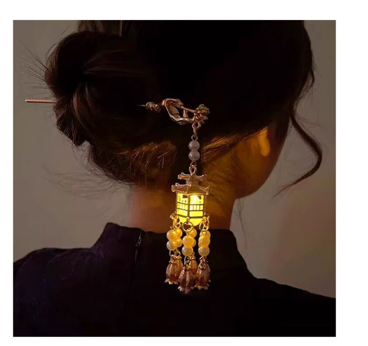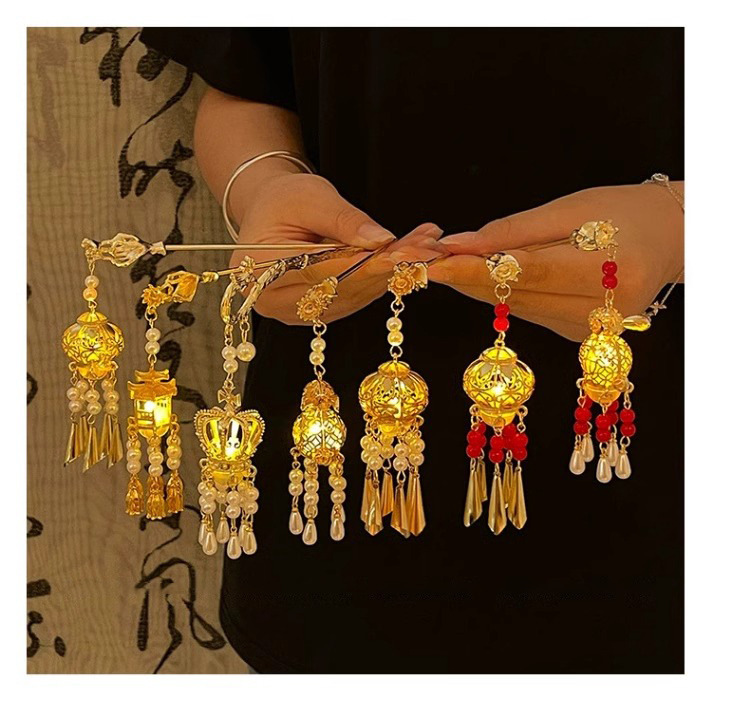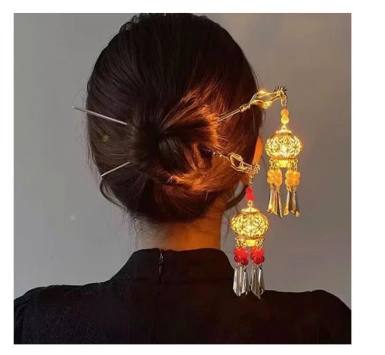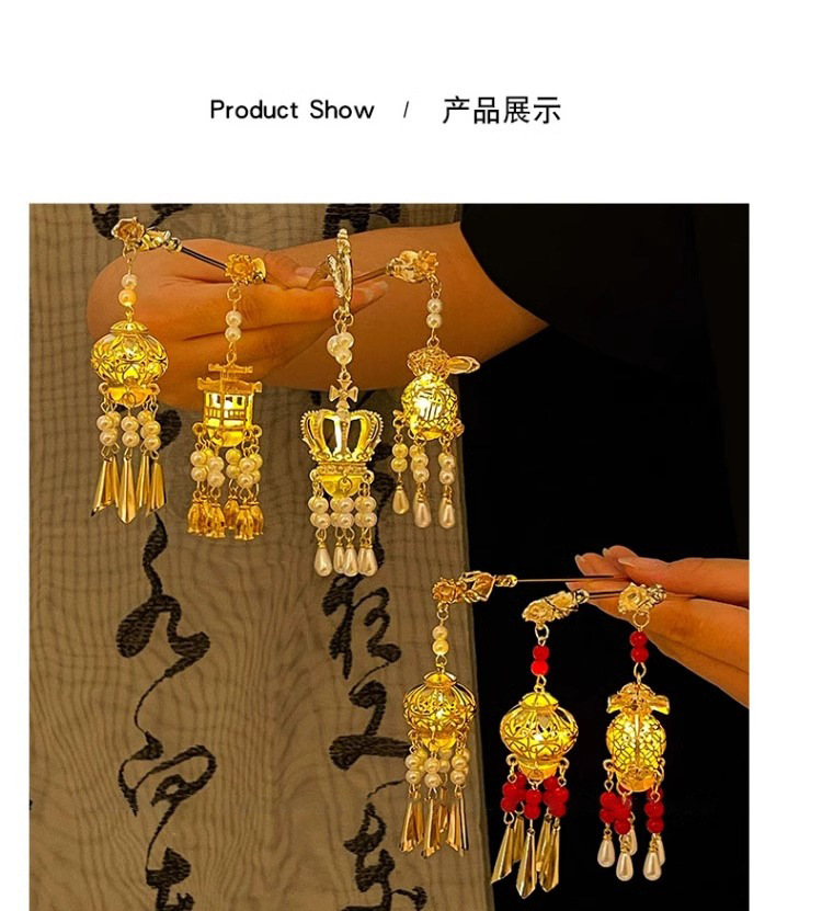 Los niños de estilo antiguo linterna brillante pinzas de cabello de ropa china tocado de cabello de niñas pinzas de cabello cheongsam paso sacudir la cabeza posterior pinzas de lámpara palacio