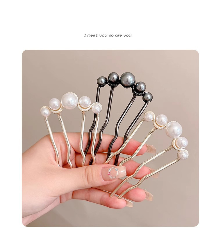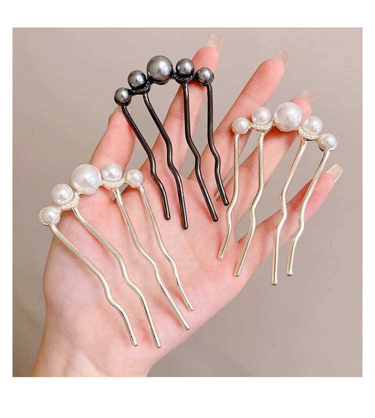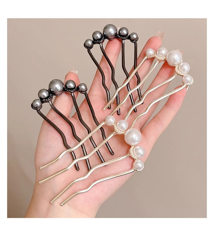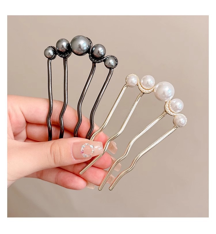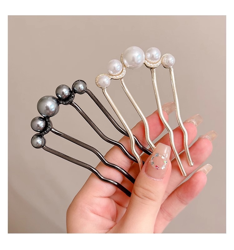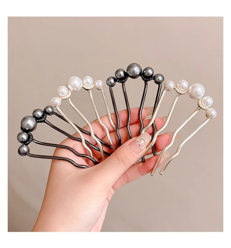 A151 antiguo estilo de perlas de bala negra en forma de U pinzas de cabello nuevo artefacto de cabello de estilo chino de alta calidad