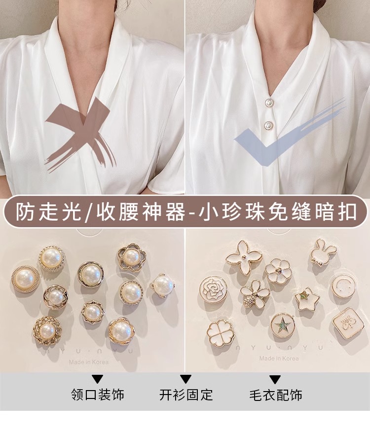 Botón de pecho anti-divertido, botón de clavos sin costura, pin de ropa fija, broche de botón de cuello de mujer, perlas