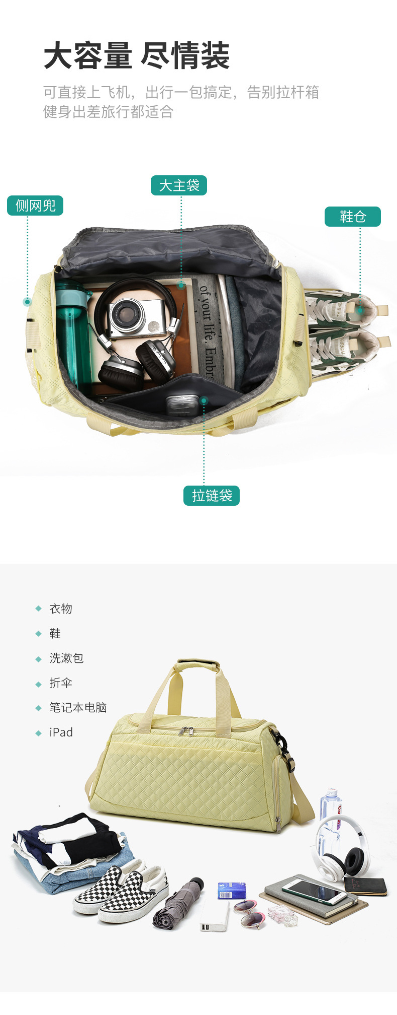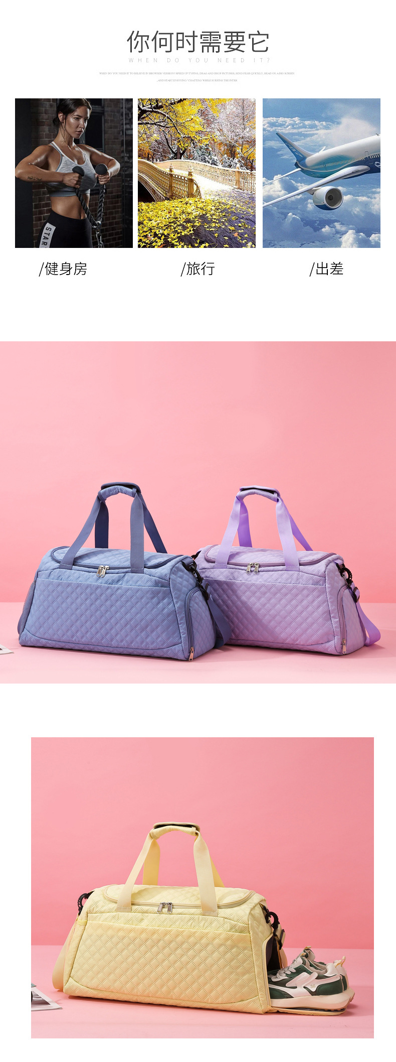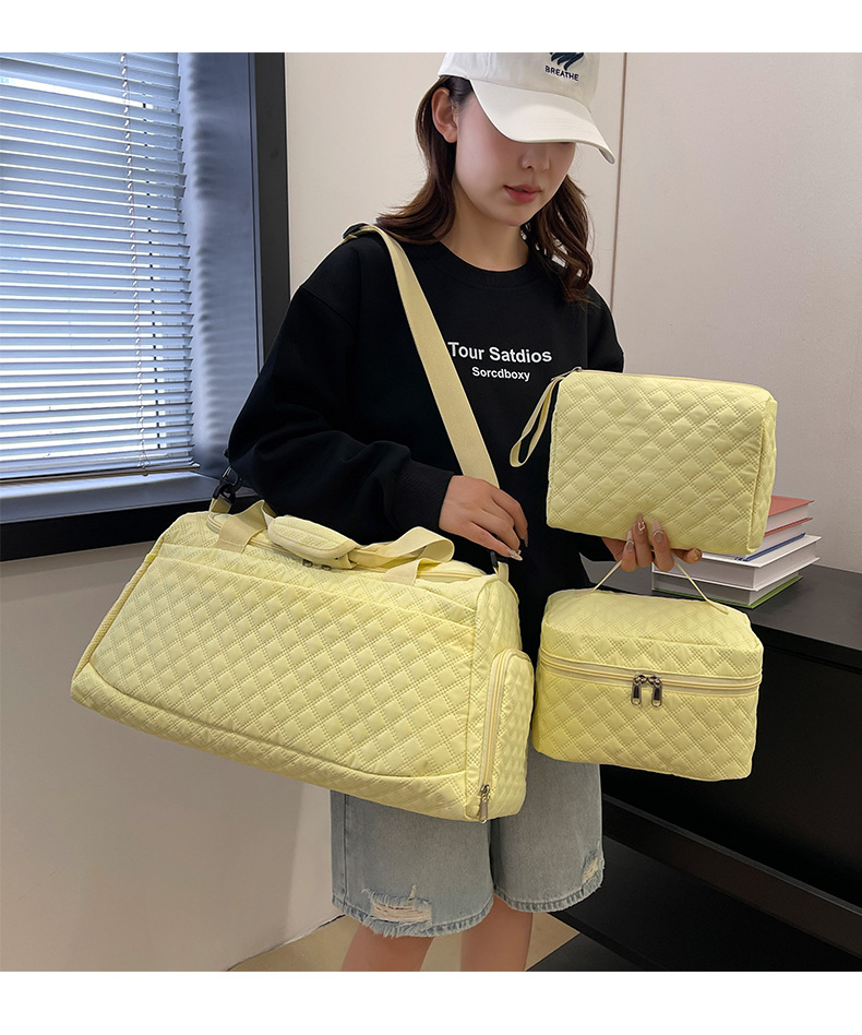 Bolsa de viaje separación seca y húmeda de zapatos independientes bolsa de yoga logotipo personalizado ajustable barra de tracción bolsa de tres piezas conjunto