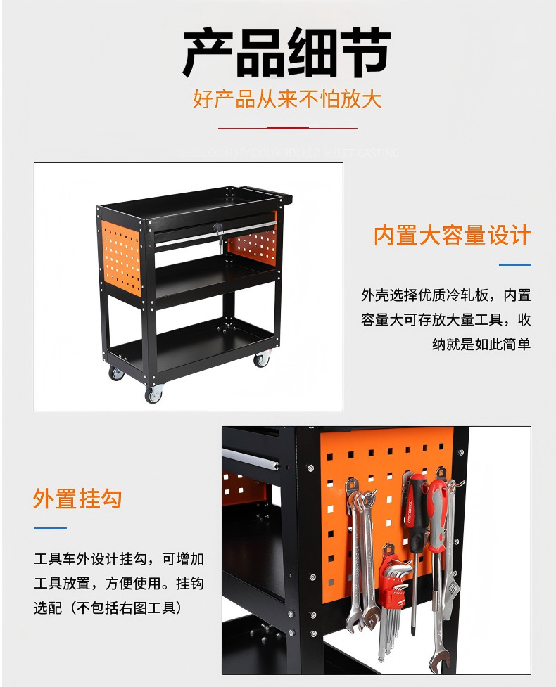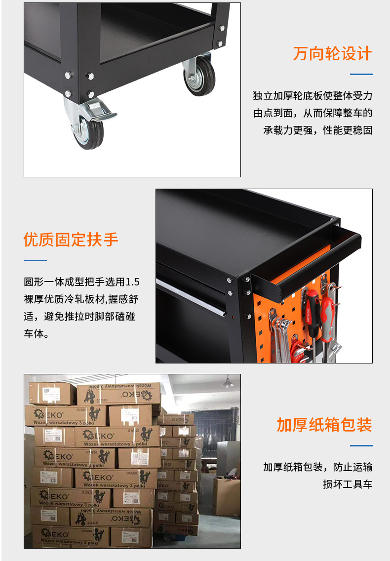 | Especificaciones y modelos | Vehículo de herramientas móviles (con cajón) * placa laminada en frío de primera clase * 200kg, vehículo de herramientas móviles (con cajón) * placa posterior * 200kg, engrosamiento del vehículo de herramientas negro + cajón * placa laminada en frío de primera clase * 200kg, modelo de carga industrial rojo * placa laminada en frío de primera clase * 200kg, modelo de carga industrial azul * placa laminada en frío de primera clase * 200kg, modelo de carga industrial lateral poroso * placa laminada en frío de primera clase * 200kg |
