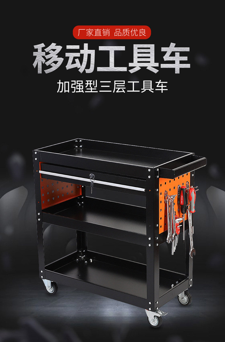 Carro de herramientas de tres capas carro de reparación de automóviles cajón lateral carro móvil multifuncional de piezas de almacenamiento doméstico carro de herramientas