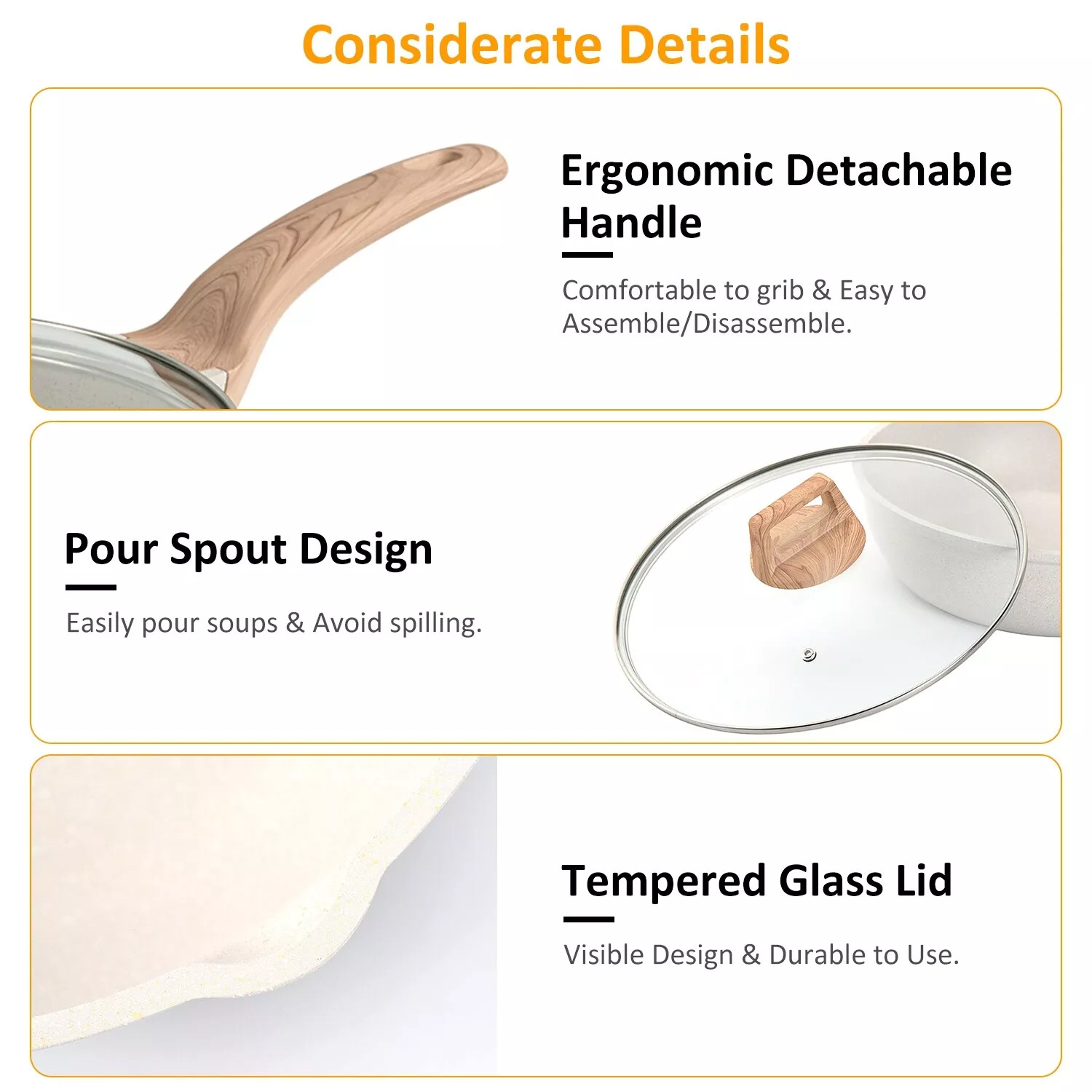 Juego de utensilios de cocina de granito transfronterizo, juego de utensilios de cocina antiadherentes de piedra Maifan, sartén, wok, olla para sopa, juego de utensilios de cocina de 7 piezas.