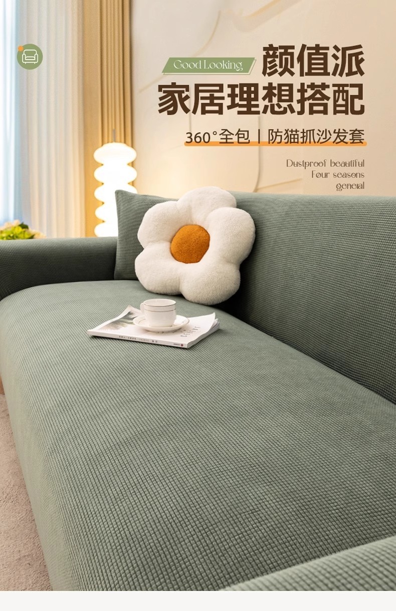 Funda de sofá Funda de cubierta Funda de todo incluido Cojín de sofá grueso anti-agarre de gato Cubierta elástica Viento de hoja de palma Algodón