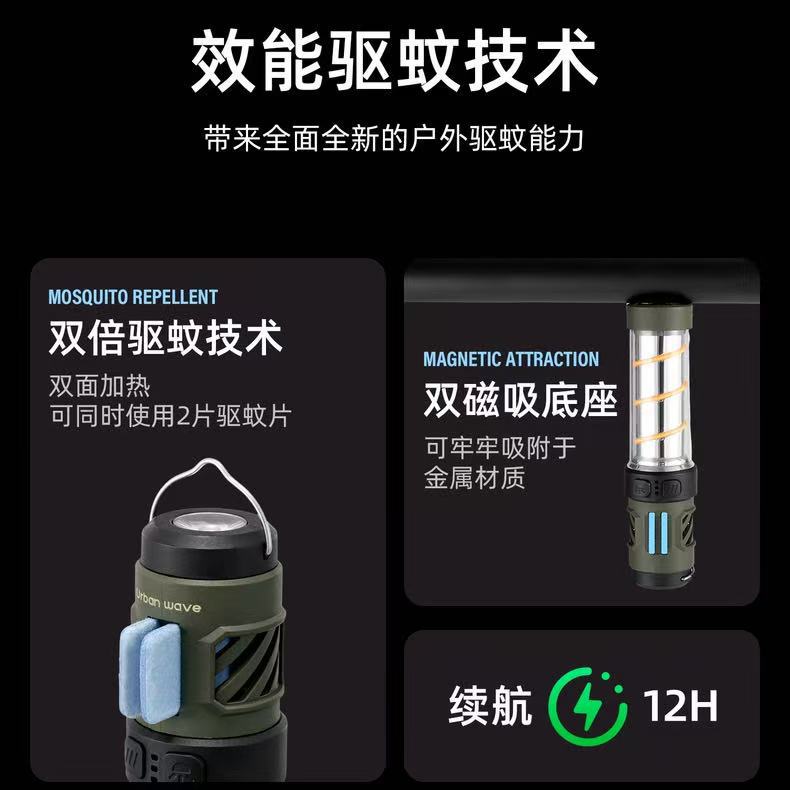 Lámpara de mosquitos al aire libre transfronteriza 3 - en - 1 linterna de luz fuerte larga duración soporte de lámpara repelente de mosquitos luz cálida atmósfera de camping