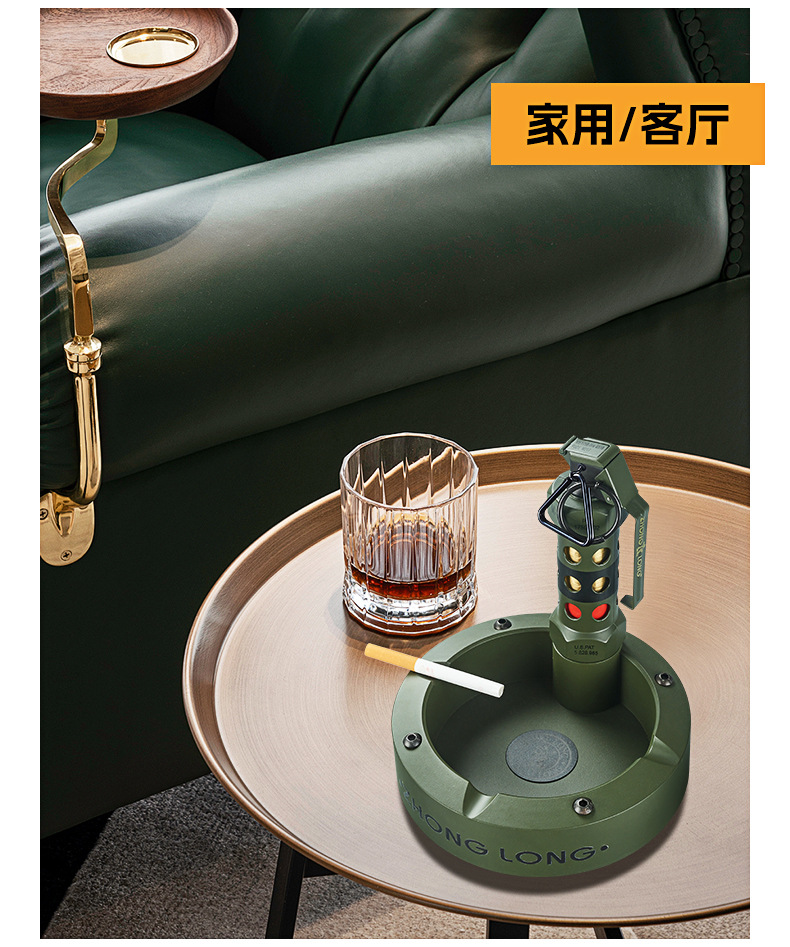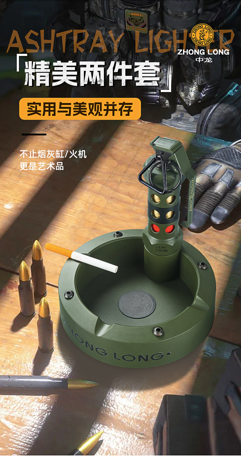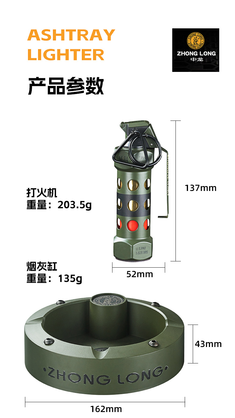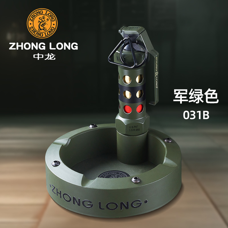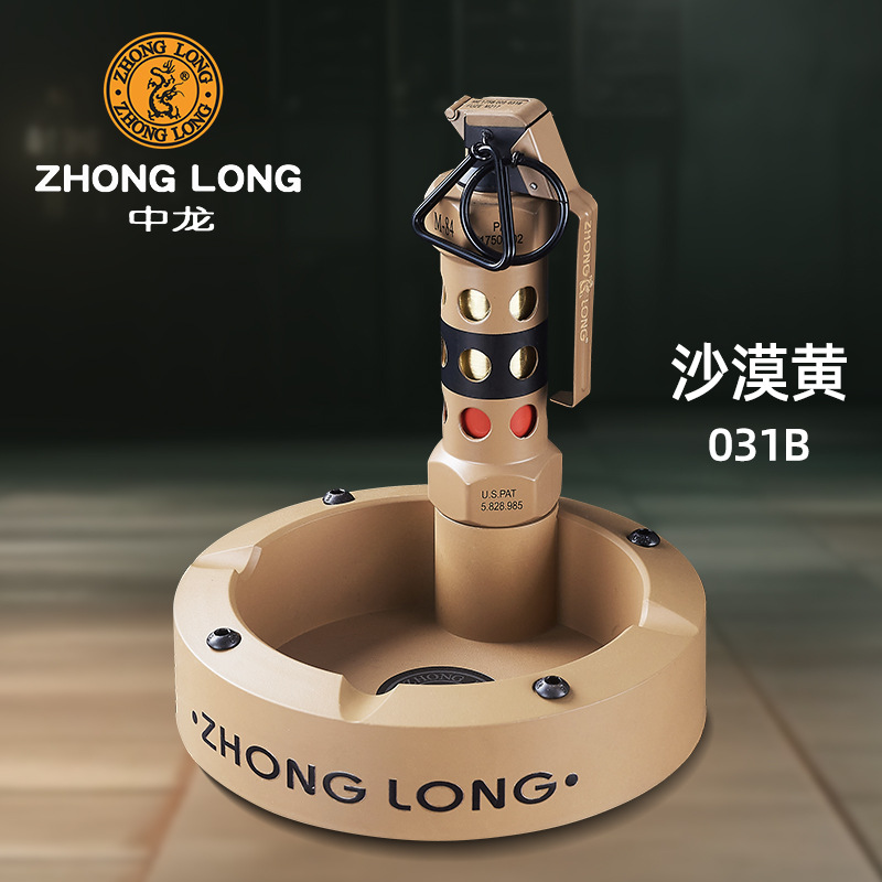 Gran tamaño todo el metal grado fiebre militar M84 modelo de granada de choque inflable encendedor a prueba de viento conjunto de cenicero
