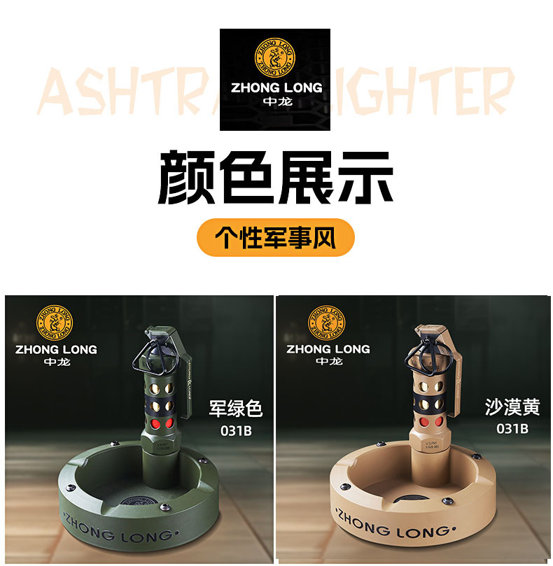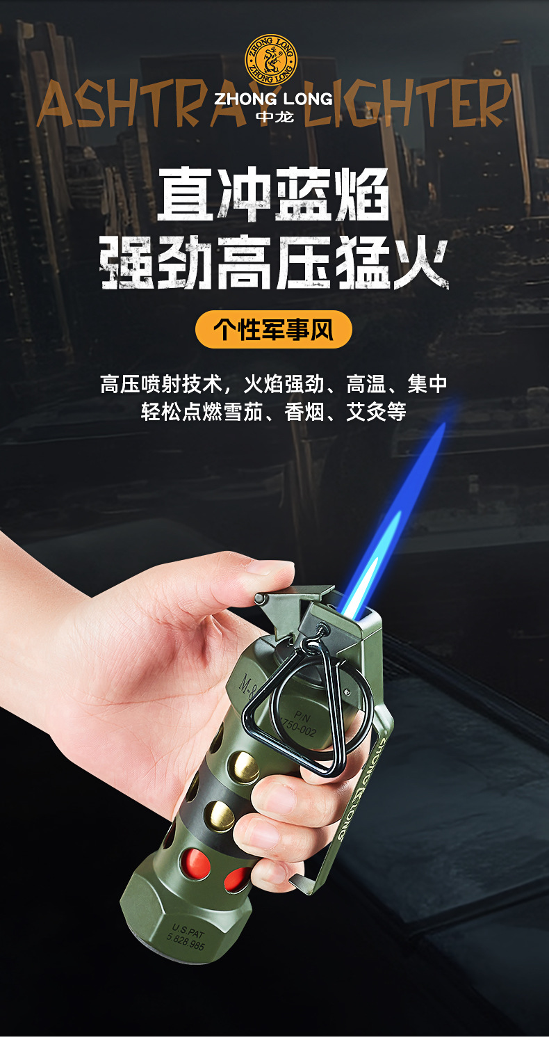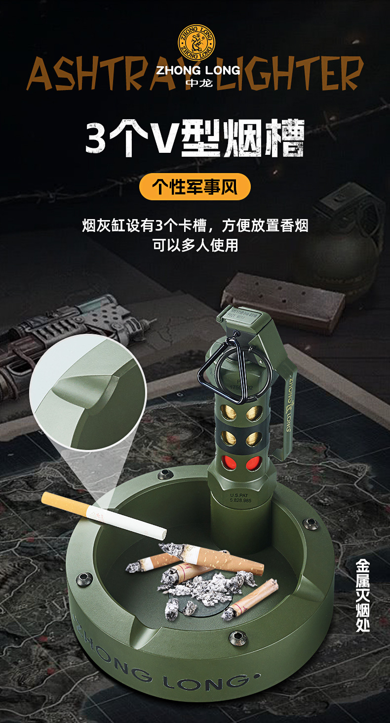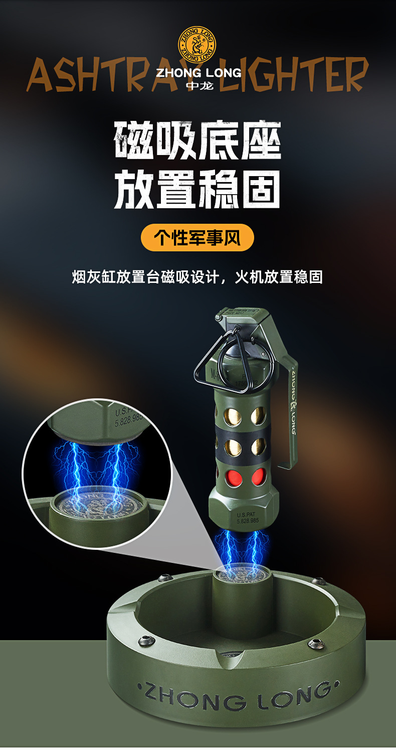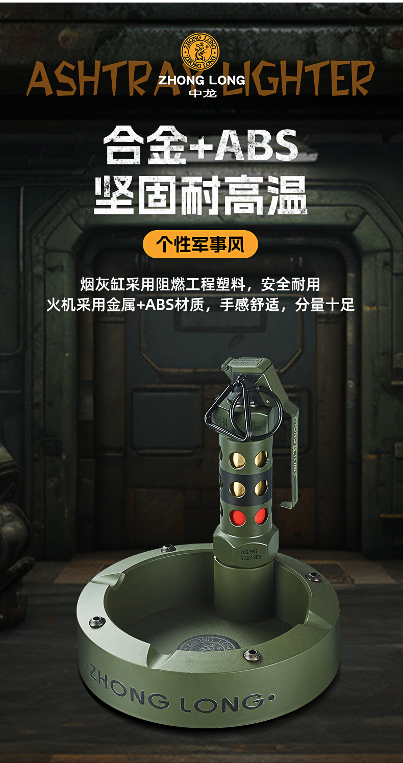 Gran tamaño todo el metal grado fiebre militar M84 modelo de granada de choque inflable encendedor a prueba de viento conjunto de cenicero