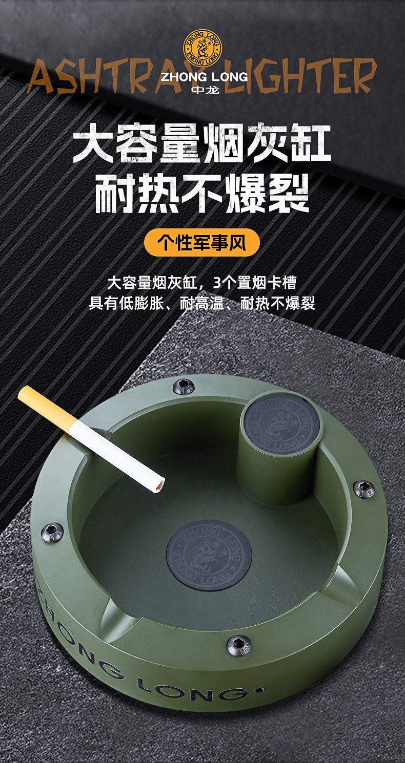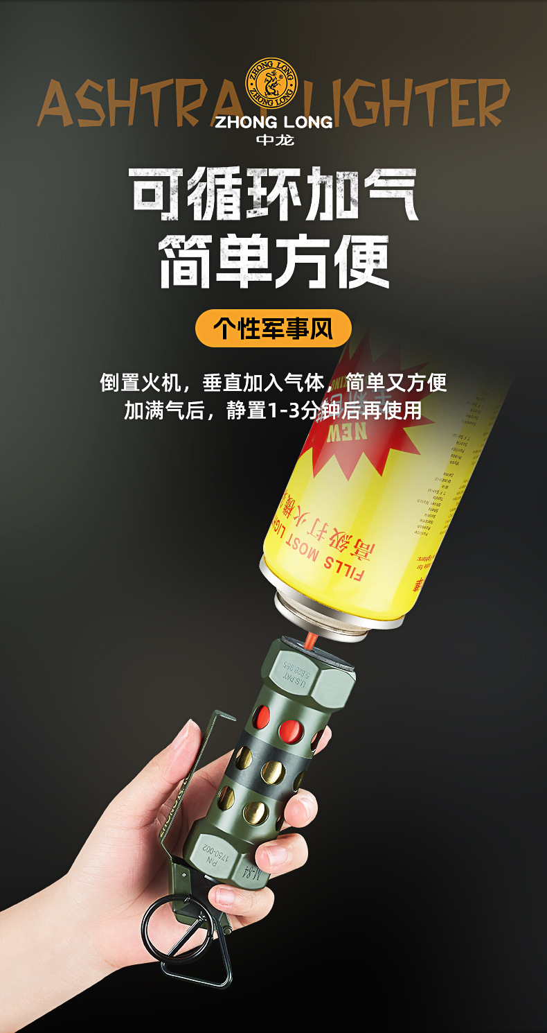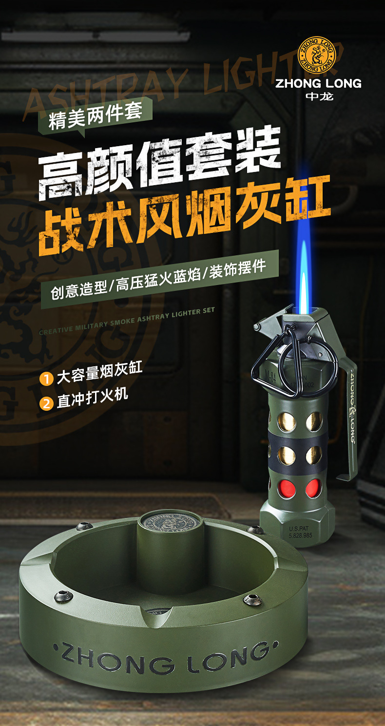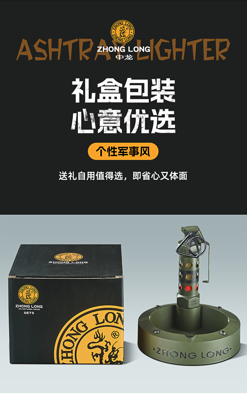 Gran tamaño todo el metal grado fiebre militar M84 modelo de granada de choque inflable encendedor a prueba de viento conjunto de cenicero
