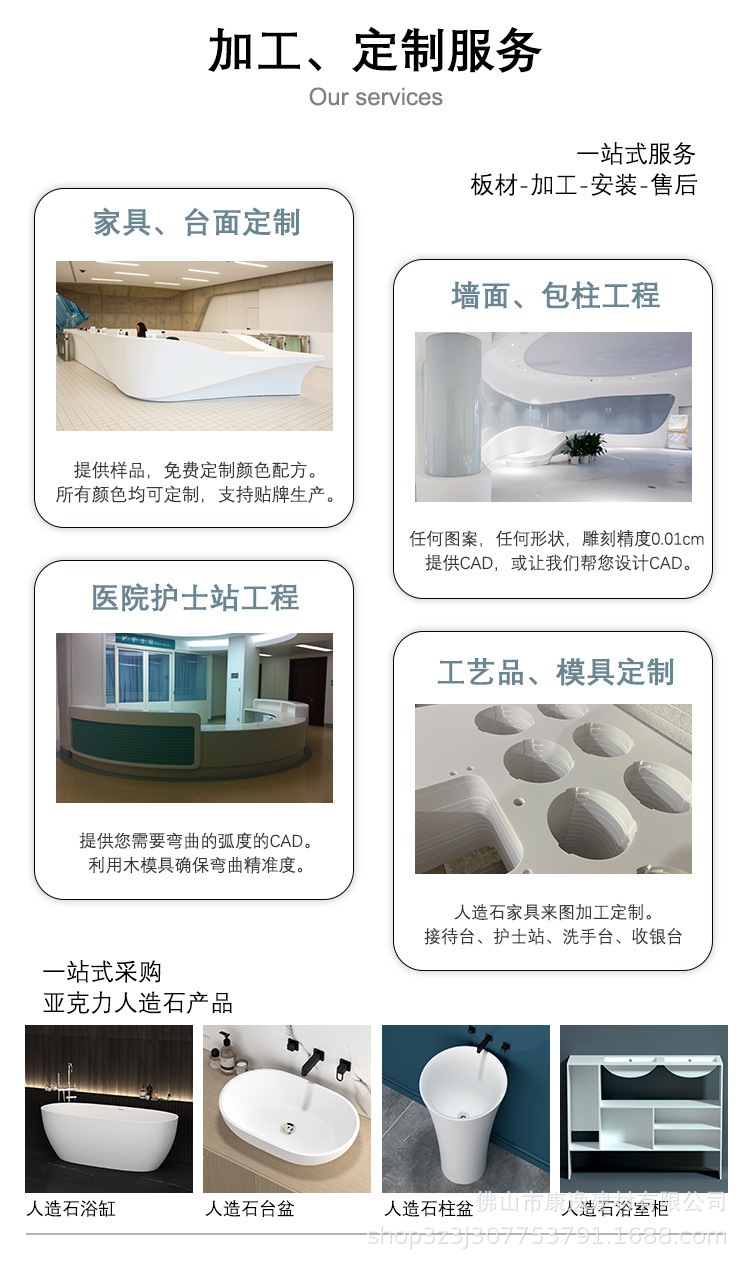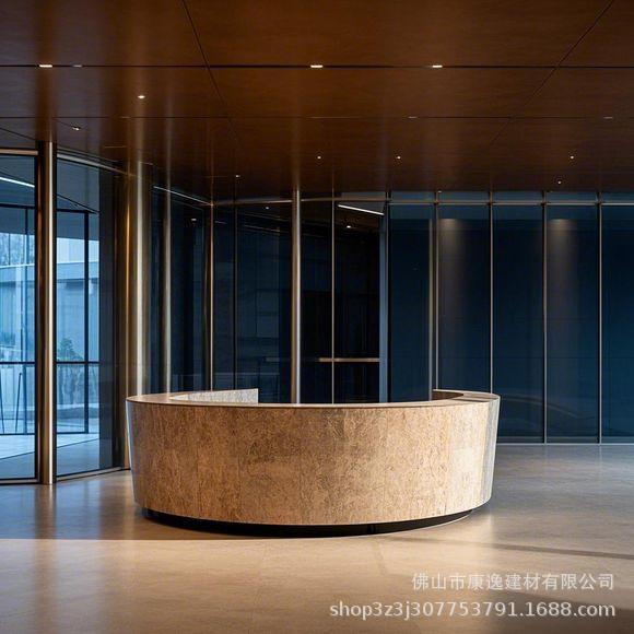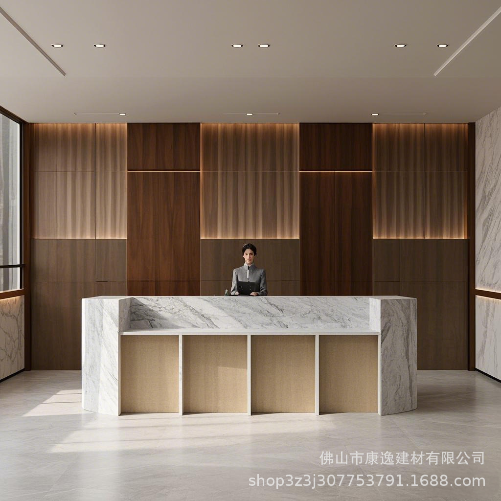 Fabricantes de recepción de piedra artificial acrílica al por mayor procesamiento de comercio exterior recepción en forma especial de la mesa de recepción