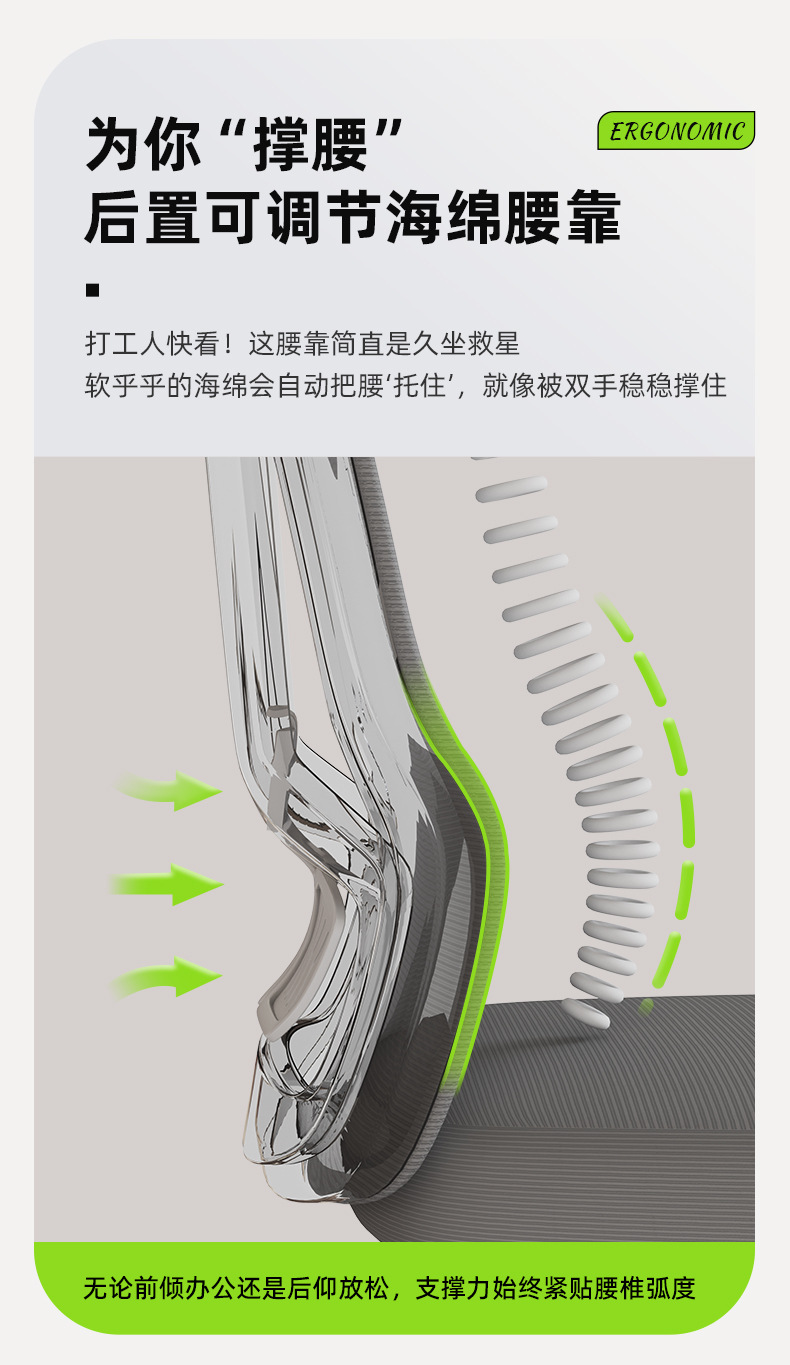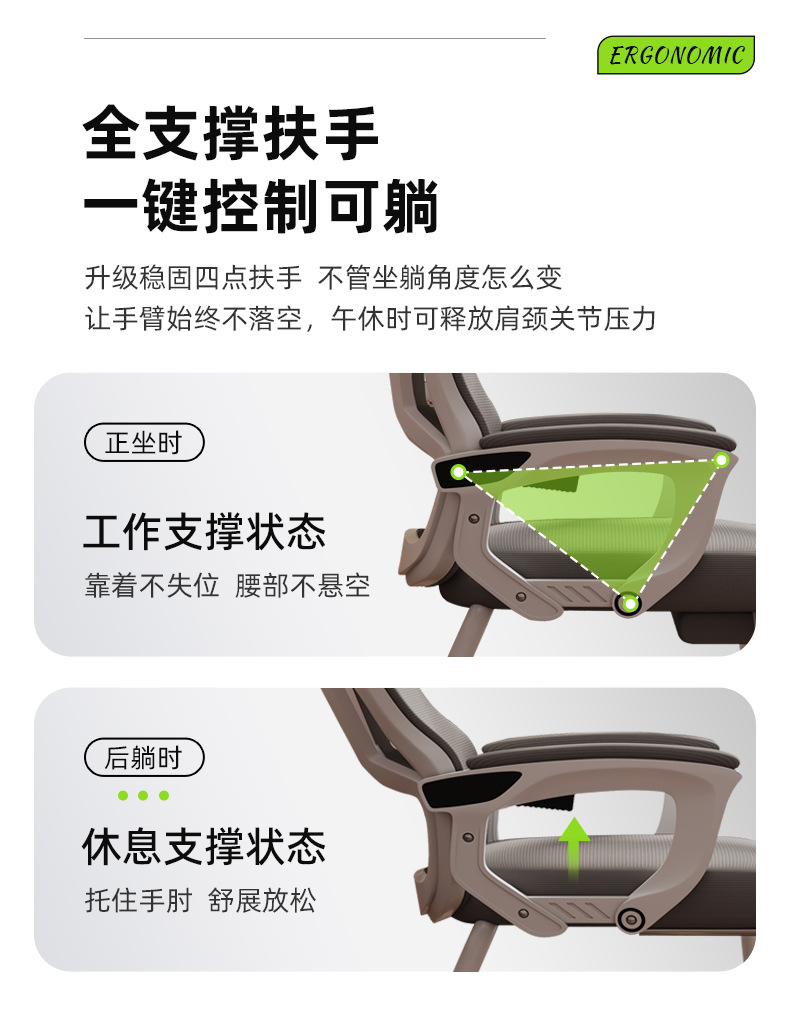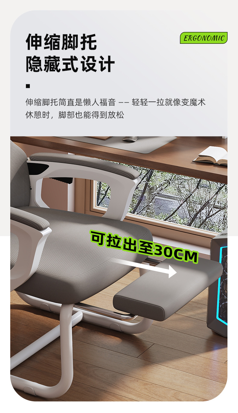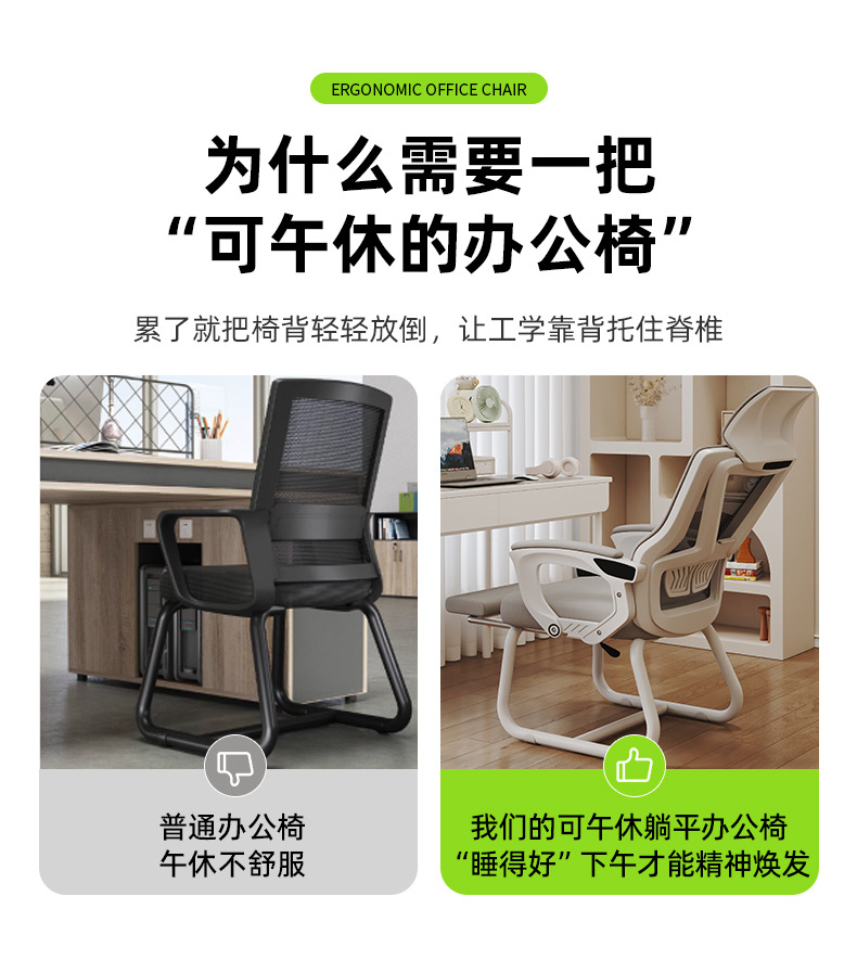 silla de computadora confortable siesta larga, silla de oficina ergonomía de doble propósito, asiento de respaldo de arco reclinado para el hogar