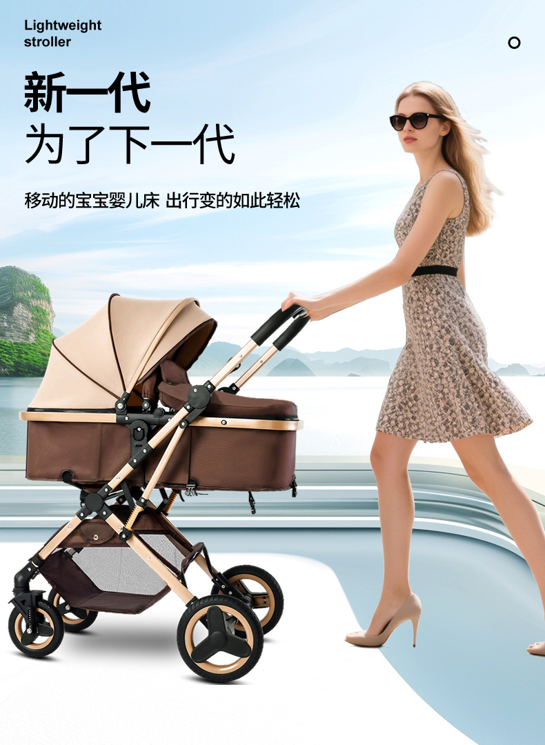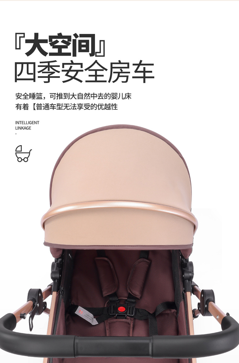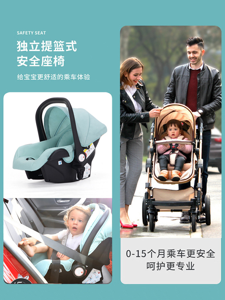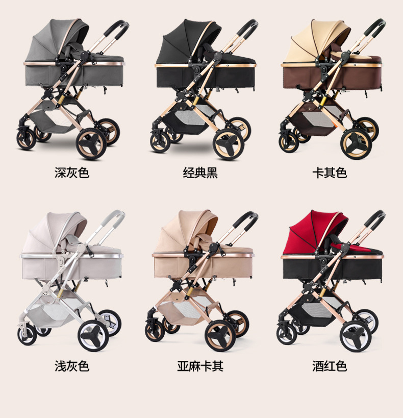 Cochecito para bebé con vista alta, se puede sentar y acostar, plegable, bidireccional, silla de auto para recién nacido.