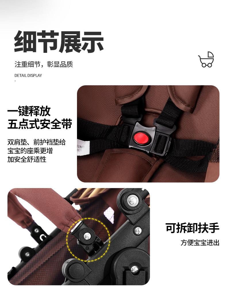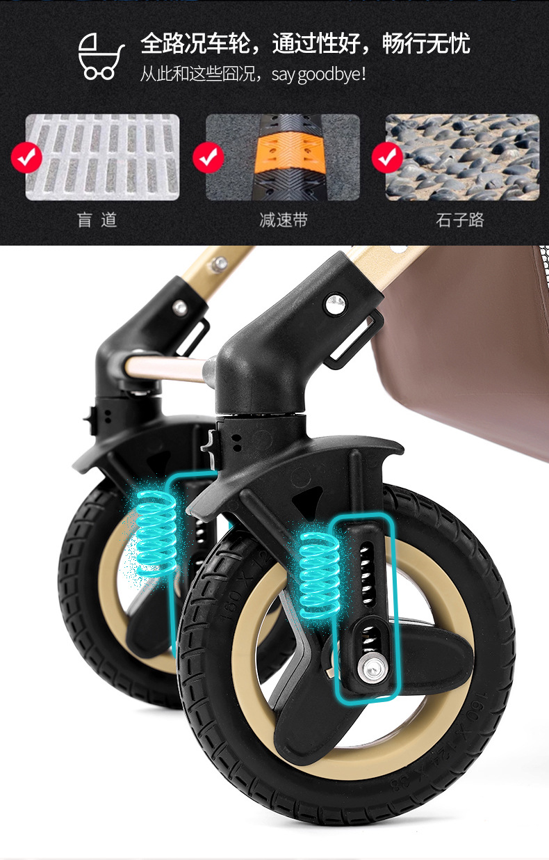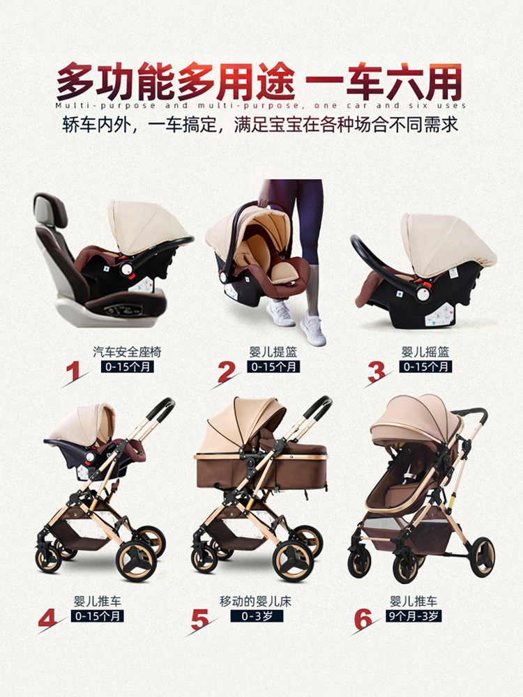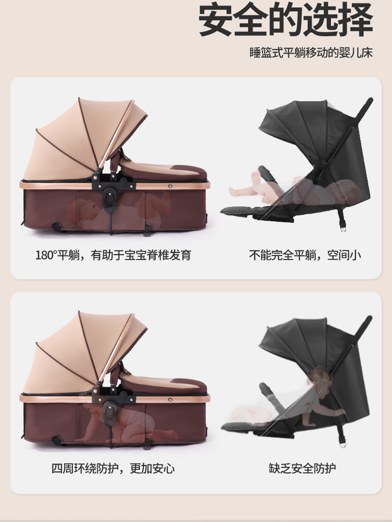 Cochecito para bebé con vista alta, se puede sentar y acostar, plegable, bidireccional, silla de auto para recién nacido.